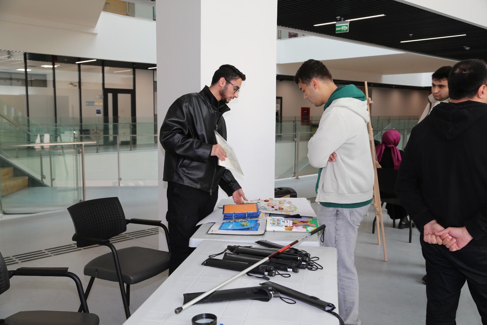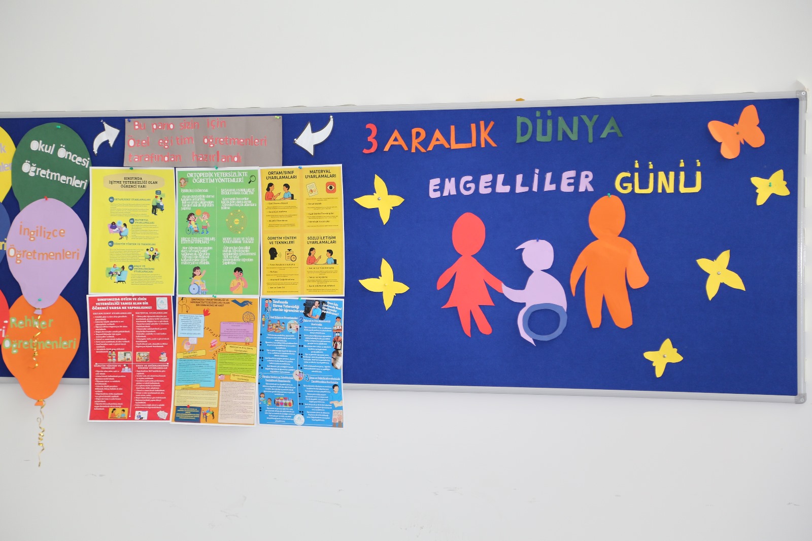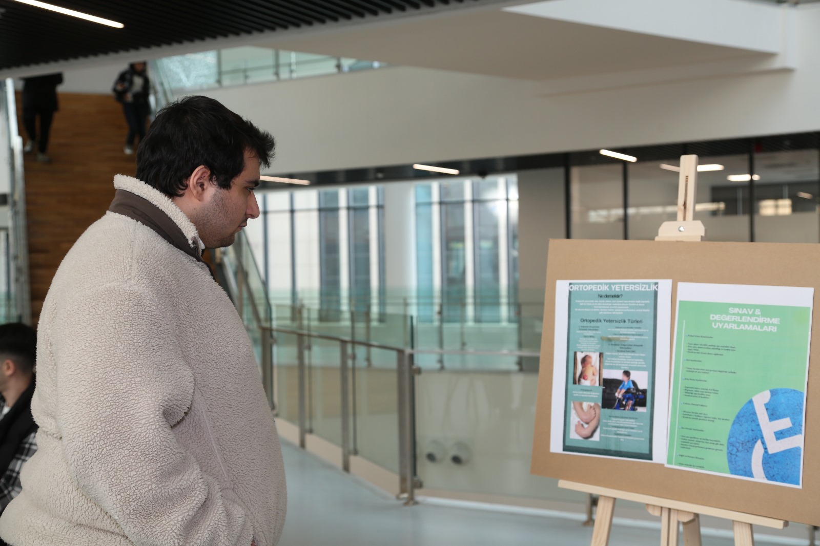 Etkinliğin en dikkat çeken bölümleri, görme yetersizliği olan bireylerin bağımsız hareket becerilerinin en önemli sembolü olan “Beyaz Baston” vasıtasıyla gerçekleştirilen bina içi deneyimi ve “Braille Yazma Çalışması” atölyesi oldu. Atölyede katılımcılar, Braille alfabesiyle yazı yazma denemeleri yaparak bu iletişim aracının mantığını ve önemini kavrama fırsatı buldular. Etkinlik alanında kurulan materyal sergisi, özel eğitimde kullanılan öğretim araç-gereçlerini ve öğrencilerin tasarladığı özgün materyalleri inceleme fırsatı sundu. Sergi alanını gezen katılımcılar, farklı gelişimsel özelliklere sahip bireylerin eğitiminde kullanılan somut materyaller hakkında bilgi aldı. Ayrıca, alanda sergilenen posterlerde, farklı özel gereksinim alanlarına dair bilimsel ve güncel bilgiler paylaşıldı. “Gereksinimlerle İlgili Bilgilendirici Posterler” bölümü, katılımcıların yanlış bildiği doğruları düzeltmelerine ve özel eğitim terminolojisine hakim olmalarına katkı sağladı.
