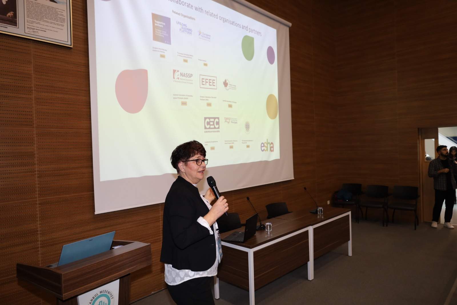 Konferansın ikinci günü olan 12 Aralık 2025 Cuma günü, üniversitemizde gerçekleştirilen yüz yüze oturumların açılış konuşmasını Prof. Dr. İbrahim Hakan Karataş yaptı. Ardından Prof. Dr. Eyüp Sevimli, ESHA Başkanı Stig Johannessen, Hayati Oktay ve Rektör Yardımcımız Prof. Dr. Yaşar Bülbül konuşmalarını gerçekleştirdi. Açılışın ardından ESHA Direktörü Petra van Haren, ESHA’nın uluslararası faaliyetlerine ilişkin bir sunum yaptı. Gün boyunca düzenlenen atölye çalışmaları ve “Digitalisation & AI in Schools” başlıklı uluslararası yuvarlak masa toplantısı ile program devam etti.