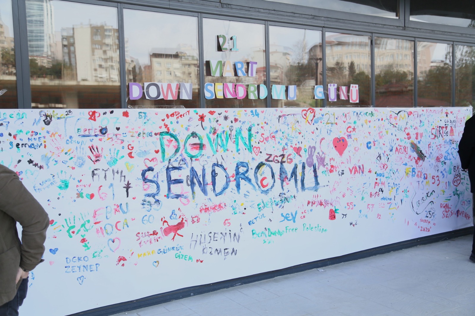Etkinlik kapsamında kurulan dev boyama platformunda, katılımcılar parmak boyalarıyla özgürce tasarımlar yaparak yaratıcılıklarını sergiledi. “Her birey parmak izi kadar eşsizdir” temasıyla gerçekleştirilen çalışmada, Down sendromlu bireylerin toplumun vazgeçilmez bir parçası olduğu ve sahip oldukları farklılıkların dünyayı güzelleştiren birer değer olduğu vurgulandı.