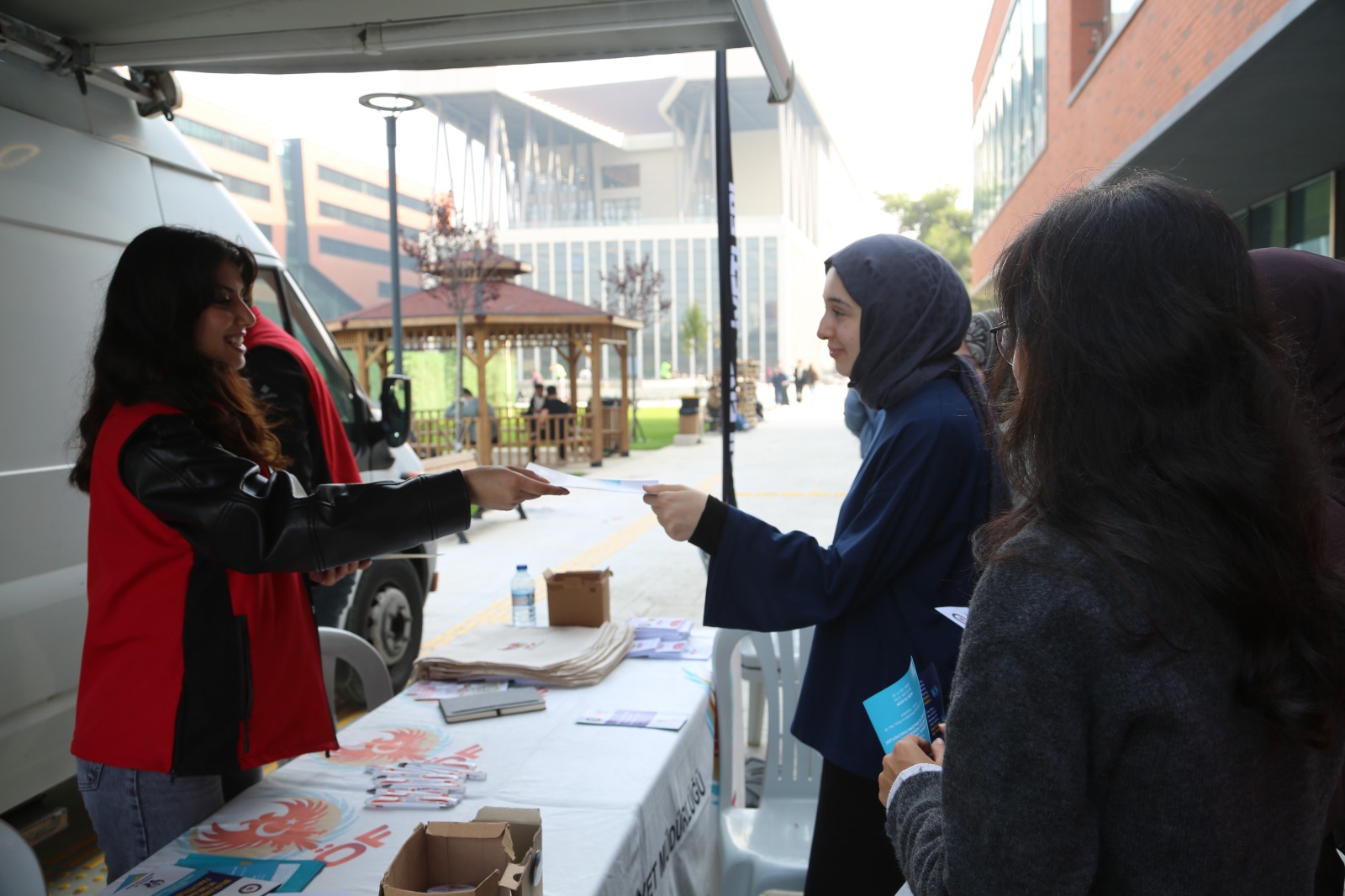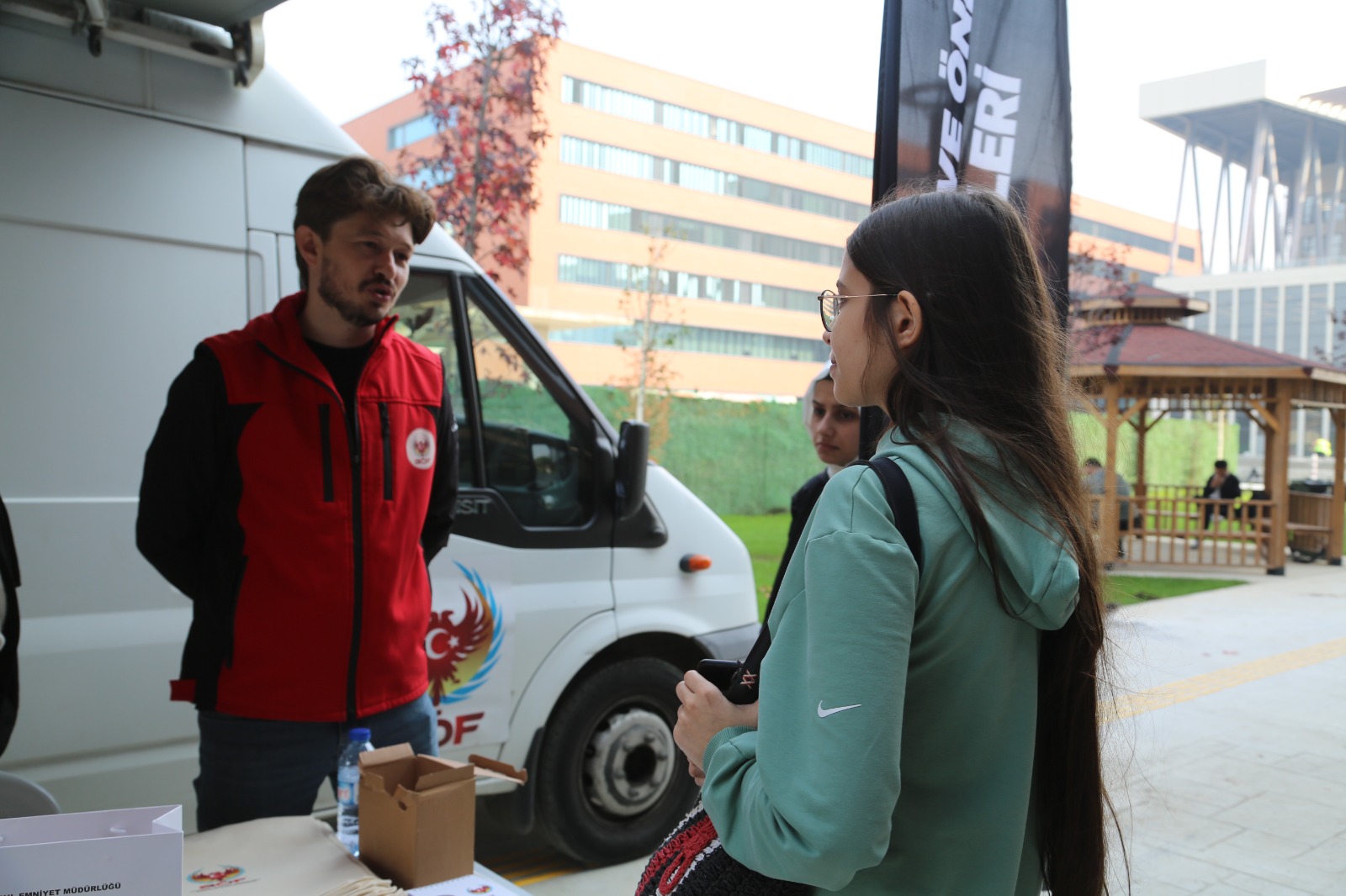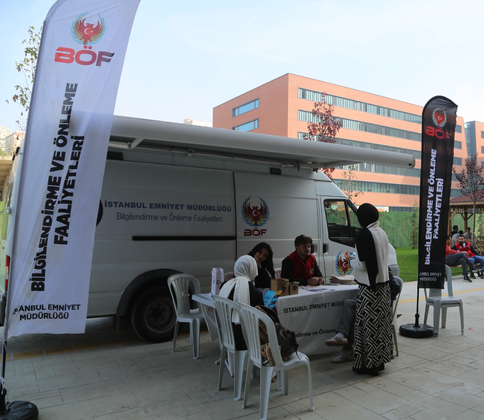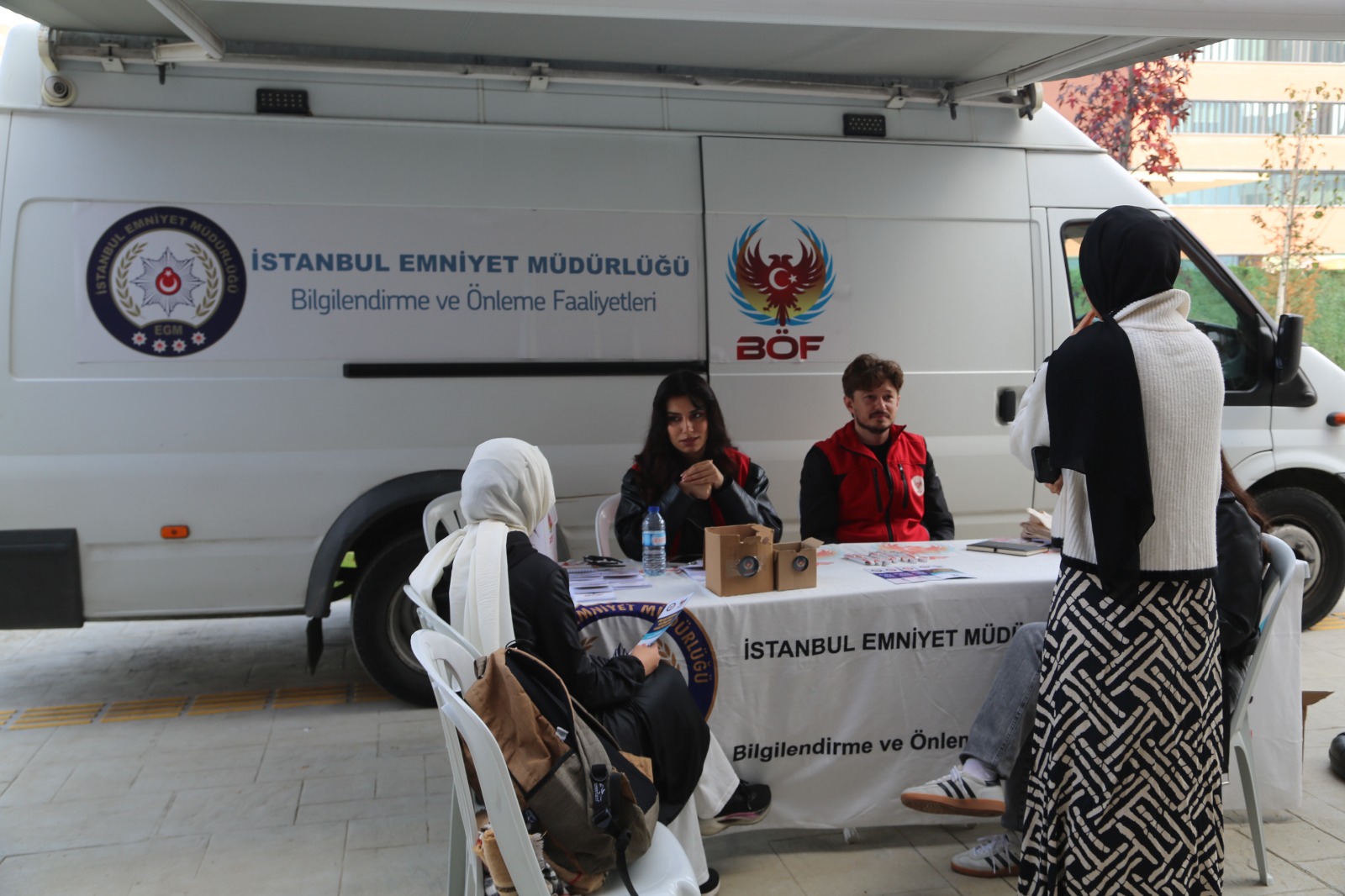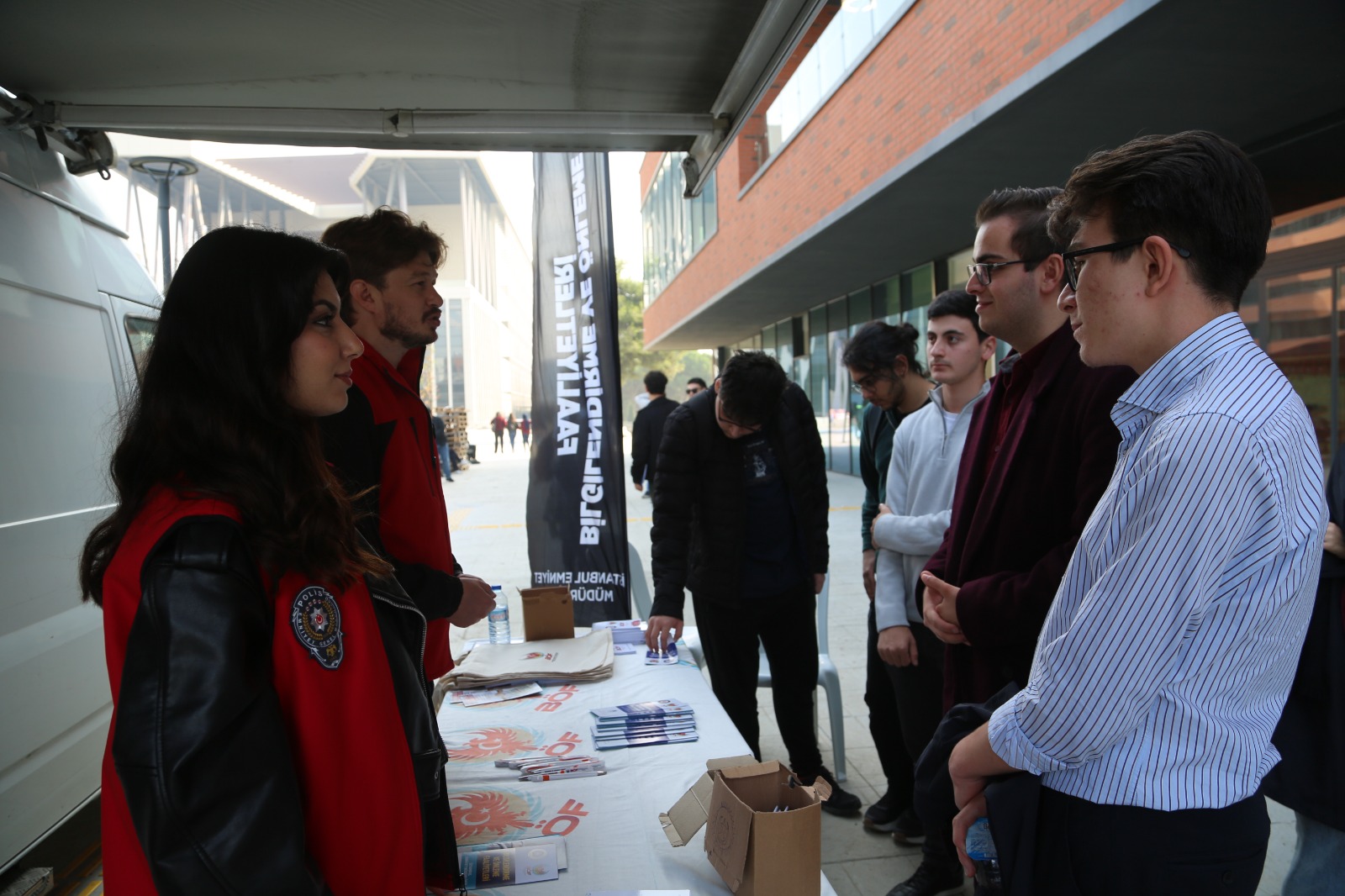 Üniversite öğrencilerini “arkadaş seçimi”, “doğru bilgi” ve “yasal olmayan faaliyetler” gibi kritik konularda bilinçlendirerek suç örgütlerinin tuzaklarından korumak amacıyla Emniyet Genel Müdürlüğü Terörle Mücadele Şubesi (TEM), 3 Kasım 2025 Pazartesi günü Merkezi Yemekhane Binası önünde bir bilgilendirme standı kurdu.