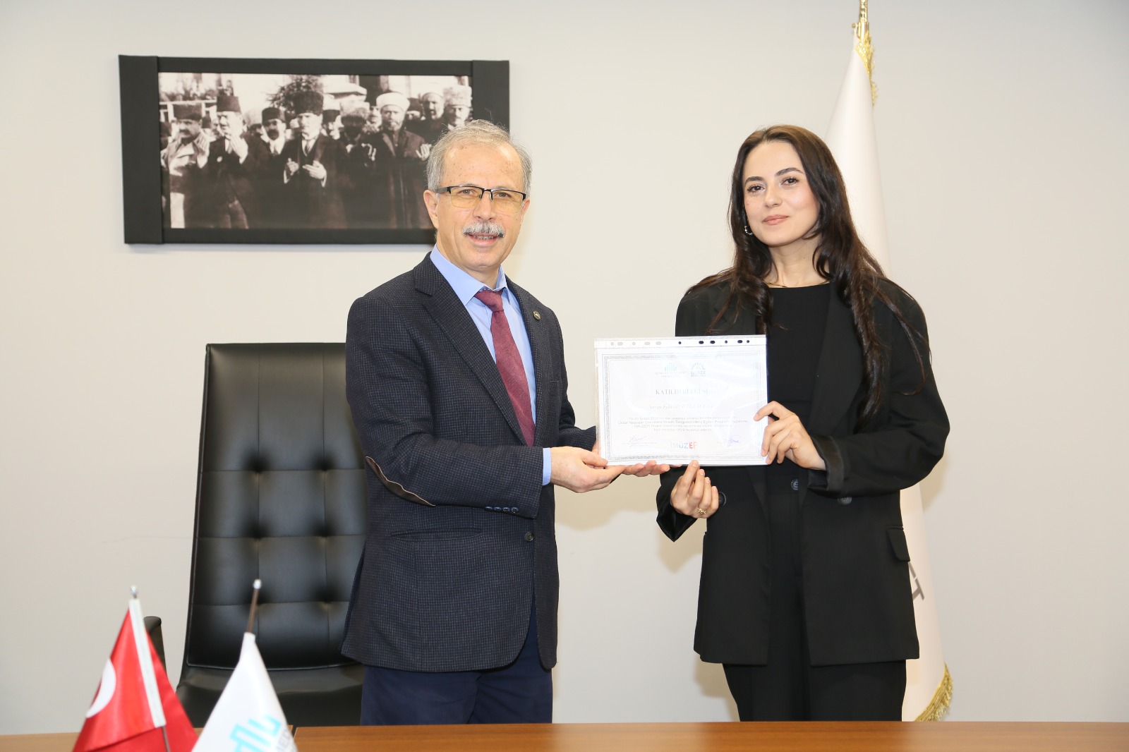 Bir hafta süren eğitim programını başarıyla tamamlayan öğretmenlere katılım belgeleri, Rektörümüz Prof. Dr. Gülfettin Çelik tarafından takdim edildi. Törene Eğitim Bilimleri Fakültesi Dekanı Prof. Dr. Eyüp Sevimli ile proje koordinatörü ve Özel Eğitim Bölüm Başkanı Prof. Dr. Marilena Z. Leana Taşcılar da katıldı.