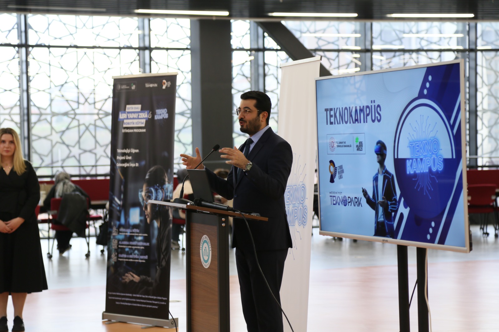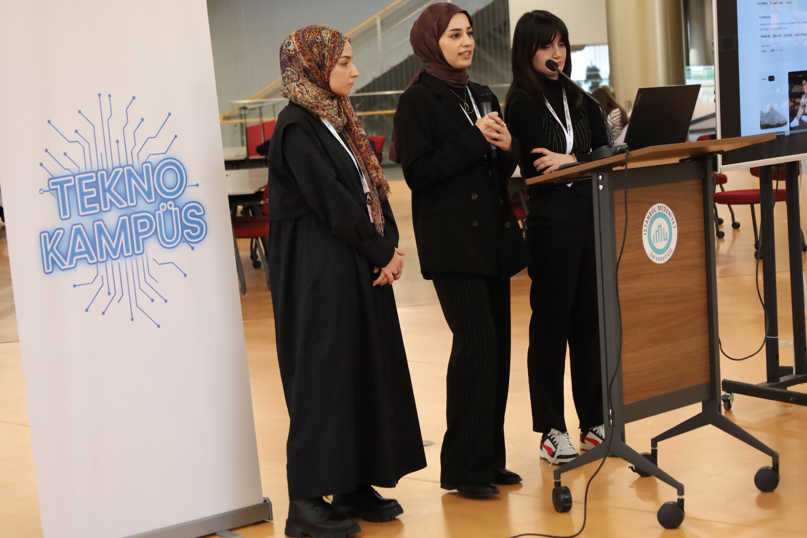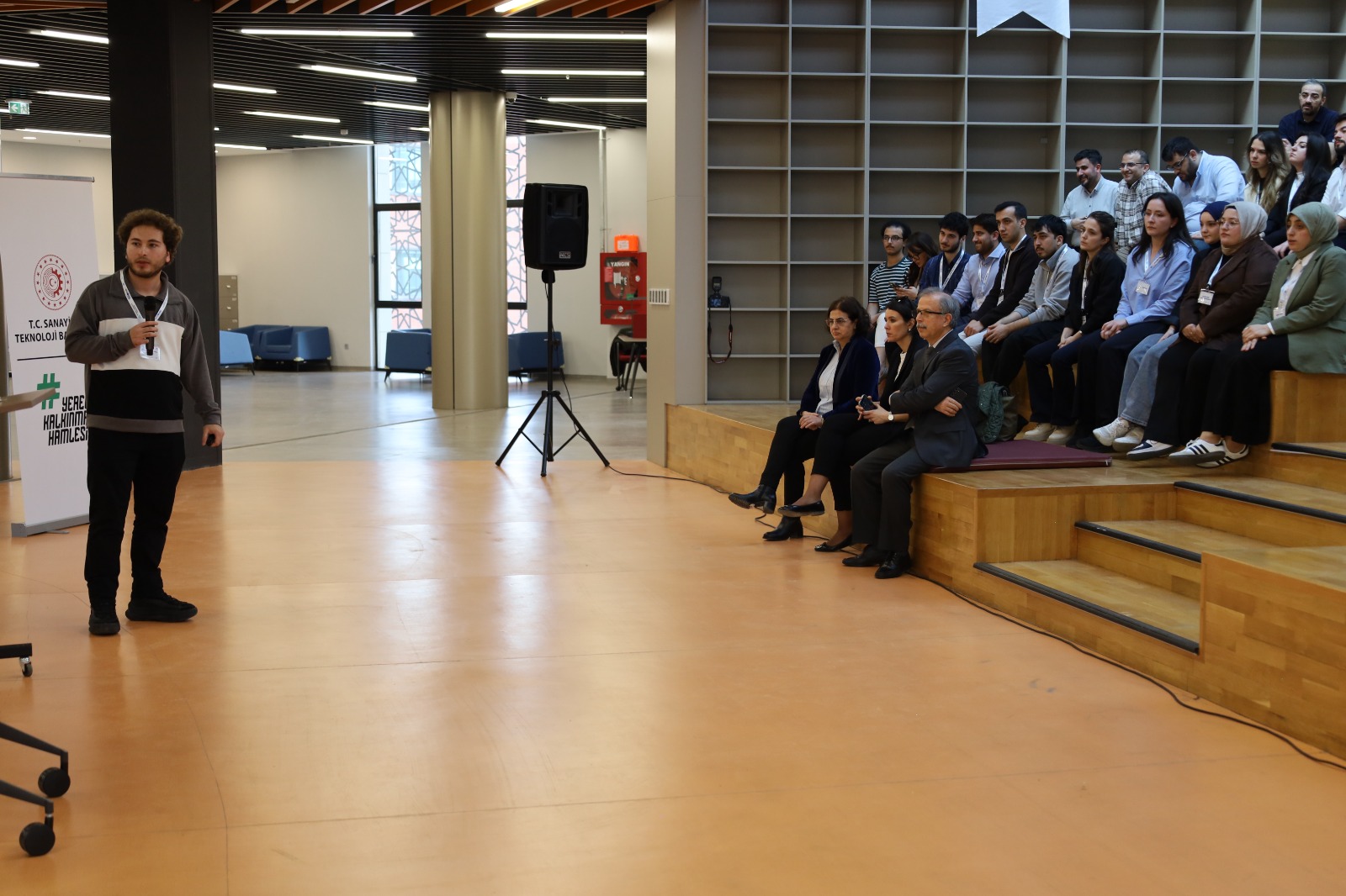 Açılış konuşmalarının ardından Teknokampüs programı koordinatörü İlayda Yıldız söz alarak, programın içeriği, katılımcıların titizlikle yürütülen seçim aşamaları, verilen eğitimler ve hayata geçirilen projeler hakkında detaylı bilgiler paylaştı. Faaliyetlerle ilgili kapsamlı bir video gösteriminin de yapıldığı etkinlikte, üniversitemizin üretim ve istihdam odaklı eğitim anlayışı bir kez daha gözler önüne serildi.