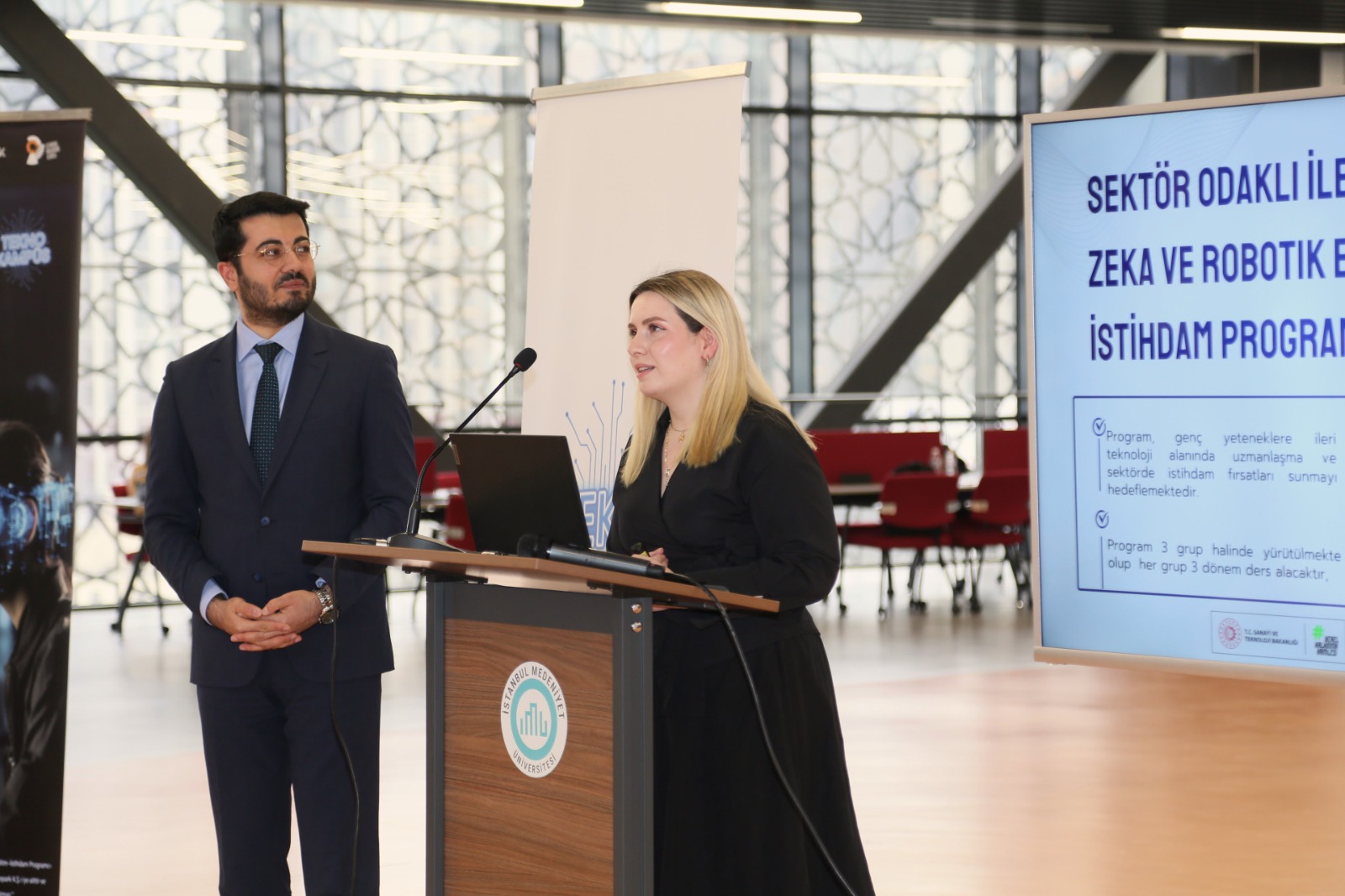İstanbul Medeniyet Üniversitesi, teknoloji ve istihdam odaklı vizyonuyla genç yetenekleri sanayi ve iş dünyasıyla buluşturmaya devam ediyor. İstanbul Kalkınma Ajansı destekli olarak yürütülen “Sektör Odaklı İleri Yapay Zekâ ve Robotik Eğitimi İstihdam Programı” kapsamında düzenlenen Teknokampüs Arena etkinliği, üniversite öğrencilerinin yenilikçi projelerini sektör temsilcilerinin beğenisine sundu. Dört ay süren yoğun eğitim maratonunu başarıyla tamamlayan öğrenciler, yapay zekâ, robotik ve girişimcilik alanlarında edindikleri teorik bilgi ve pratik yetkinlikleri sahnede sergileme fırsatı buldu.