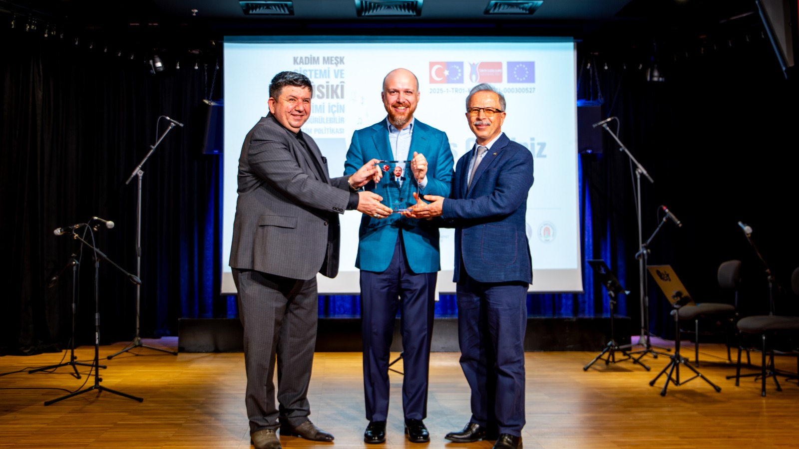 Son olarak konuşmalarını gerçekleştirmek için söz alan Sayın Necmettin Bilal Erdoğan, bu tarz projelerin kalıcı olması için kurumsallaşması gerektiğine değindi. “Eğer bir insanla kaim bir proje yapıyorsanız, o insan başlı başına bir kurum olsa dahi vefatından sonra sürdürülebilir bir hizmet yerinde kalmayabilir” uyarısında bulunurken kurulan yapının asıl amacının Türk müziğini ve kadim kültürü yeni nesillere aktarmak olduğunu belirtti. Eğitimin kesintisiz bir zincir olması gerektiğini vurgulayan Erdoğan, 6 yaşından üniversite yıllarına kadar uzanan bu profesyonel yapının içerisinde yer alan katılımcılara seslenerek, her birinin kendisini “bir kültürün, bir kimliğin ve bir misyonun taşıyıcısı olarak görmeleri” gerektiğini özellikle hatırlattı.