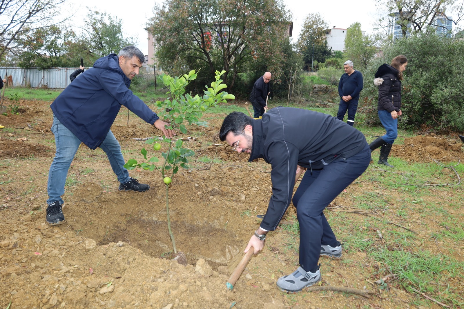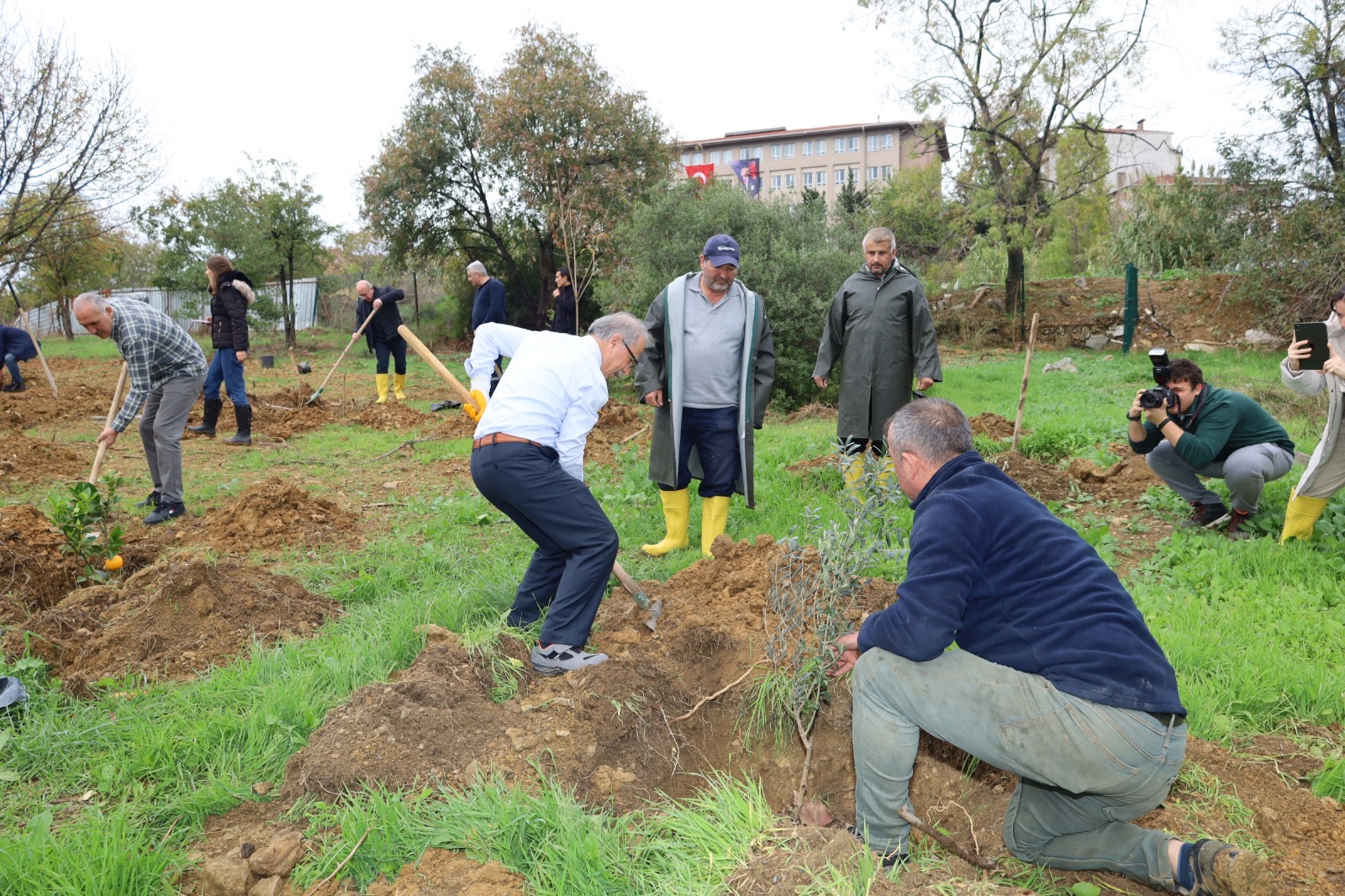 Etkinlikte, Rektörümüz ve törene katılan tüm yöneticiler, günün anlam ve önemine uygun olarak belirlenen meyve fidanlarını özenle toprakla buluşturarak ilk can suyunu verdi.