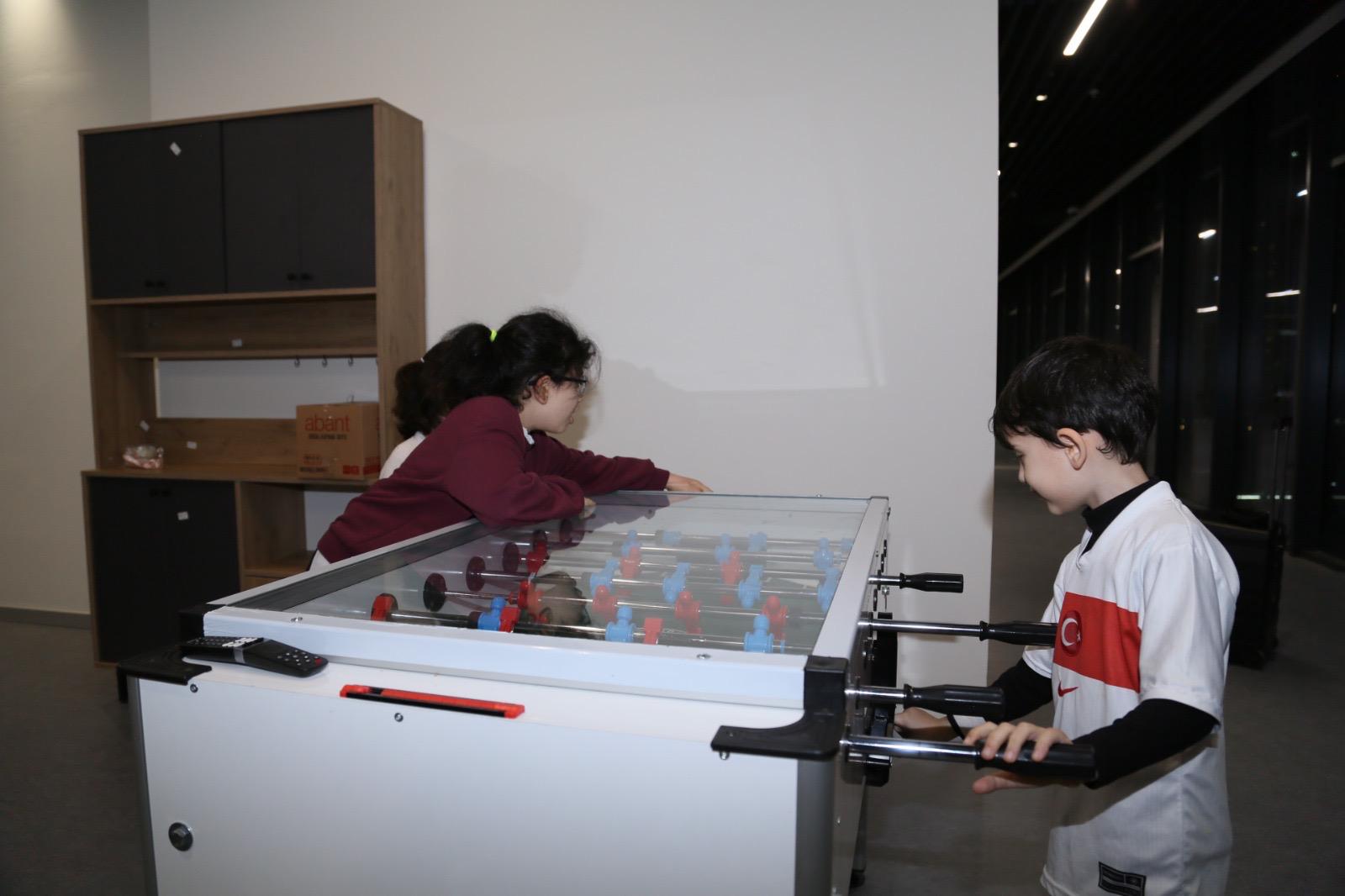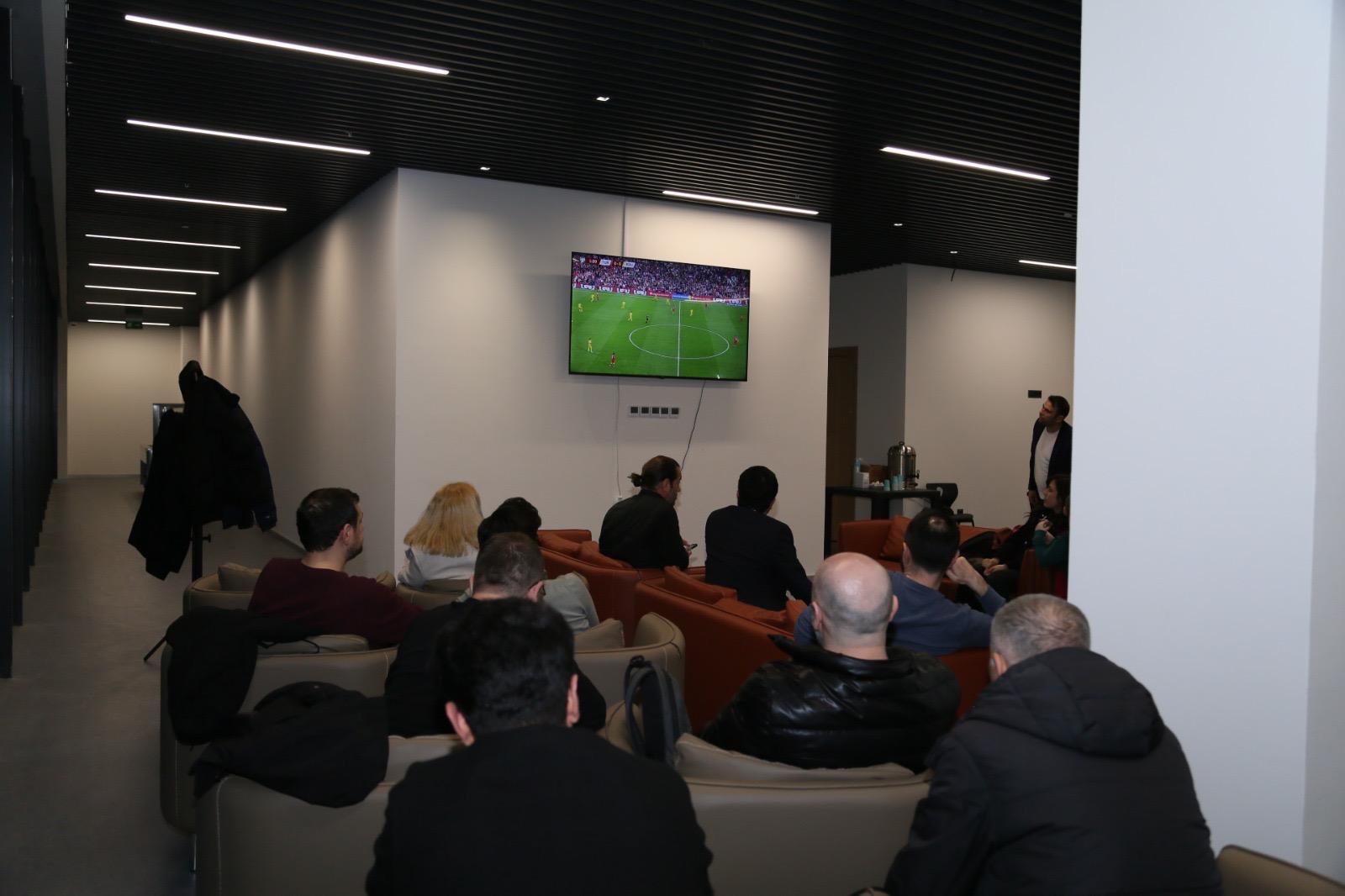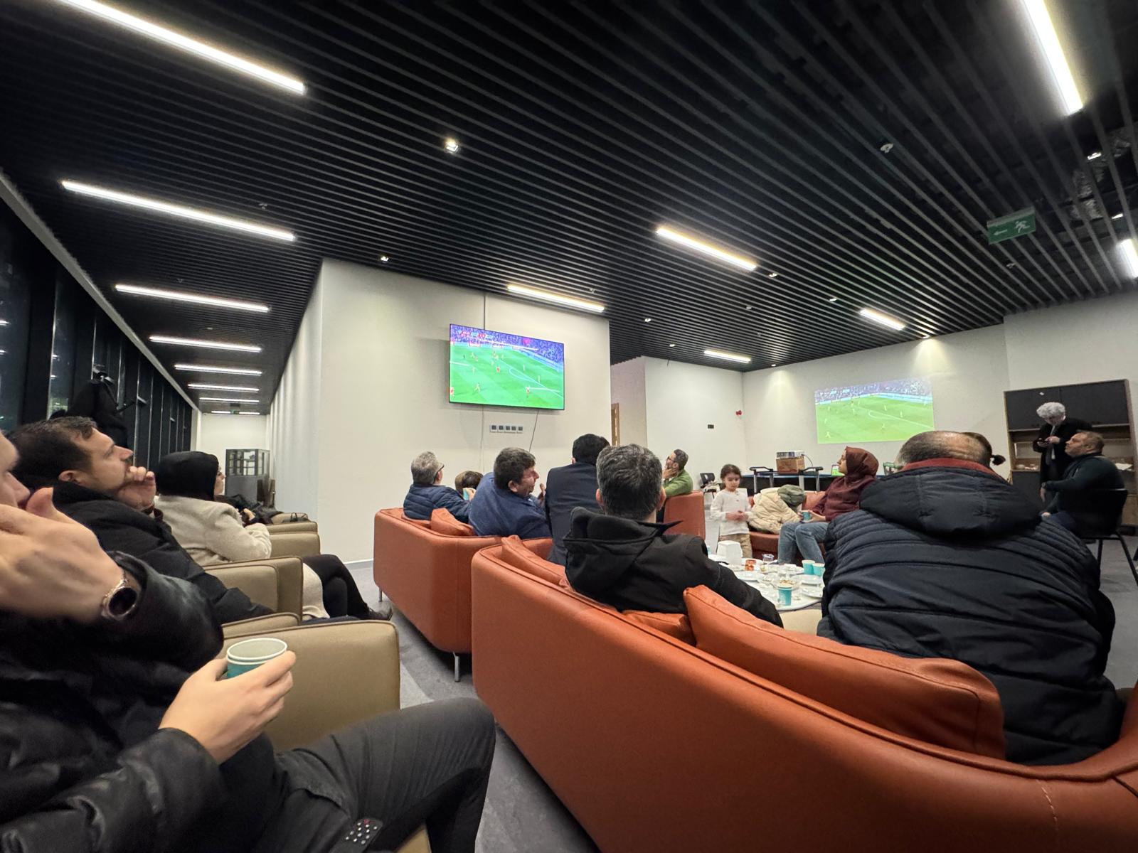 Karşılaşma boyunca katılımcılar, milli takımımıza destek verirken müsabakanın temposu ve kritik anları büyük bir ilgiyle takip edildi. Özellikle Türkiye’nin bulduğu golün ardından salonda coşku yükselirken, maçın son anlarına kadar heyecan yüksek seviyede devam etti.