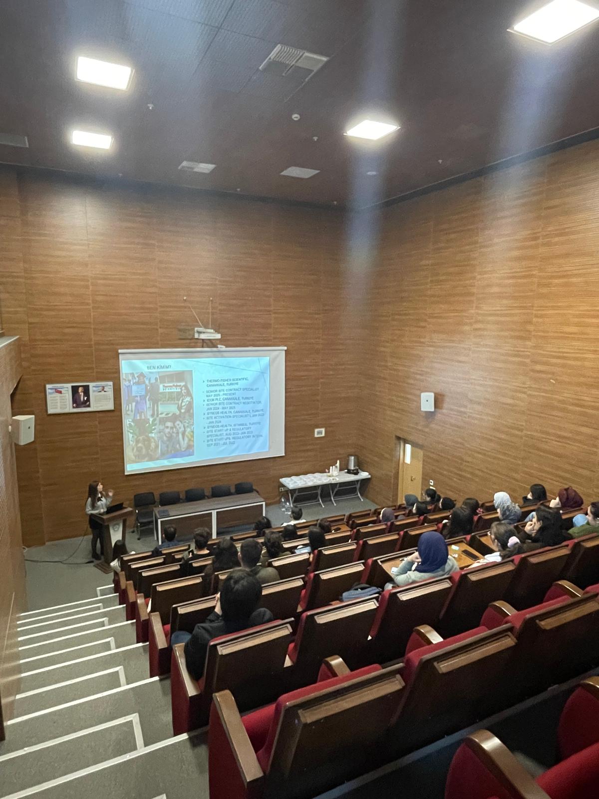 Etkinlikte, Avrupa’nın önde gelen üniversitelerinde akademik çalışmalarını sürdüren Ceyda Kılıç (Queen Mary University of London), Ezgi Selçuk (Universitat Jaume I) ve Niran Özdemir (Technische Universität München), yurt dışı lisansüstü eğitim süreçleri ve uluslararası araştırma ortamına ilişkin deneyimlerini paylaştı. Kariyerine özel sektörde devam eden Aleyna Avcıoğlu (Kıdemli Klinik Araştırma Uzmanı), ilaç geliştirme ve klinik araştırmaların operasyonel süreçlerine ilişkin bilgi aktarımında bulunurken; Aslıhan Yasir (Proje Yöneticisi) ve Büşra Nur Çıtır (TÜBİTAK Aday Araştırmacı) ise ulusal ve uluslararası araştırma projelerinde edindikleri deneyimleri aktardı.