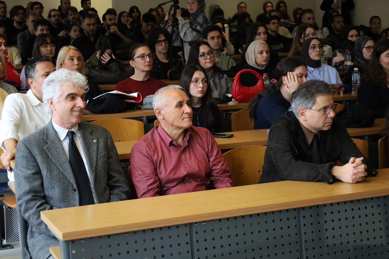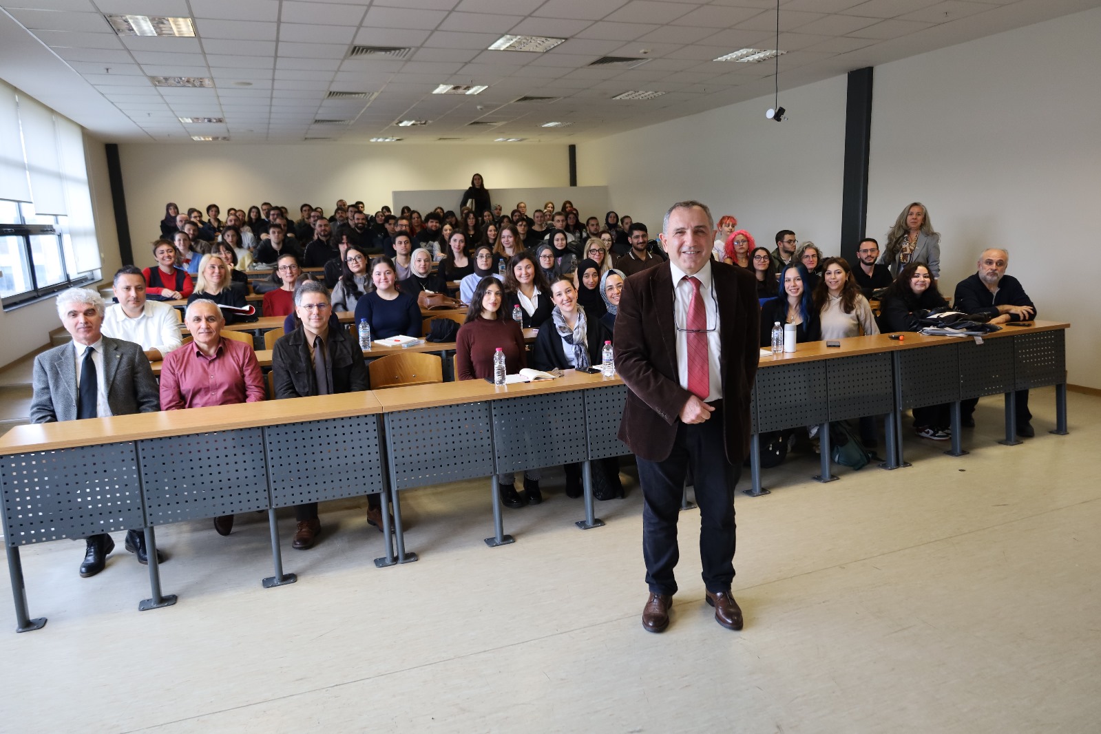Felsefe bölümümüzün kurucu öğretim üyelerinden ve aynı zamanda Bölüm Başkanı olan Prof. Dr. Oktay Taftalı, emekliliği vesilesiyle “Yaşama Felsefesi” başlıklı bir veda dersi verdi. 9 Ekim 2025 Perşembe günü Ömer Halisdemir Amfisi’nde düzenlenen derse, Rektör Yardımcımız Prof. Dr. Yaşar Bülbül, Felsefe Bölüm Başkan Yardımcısı Prof. Dr. Yaylagül Ceran Karataş, TÖMER Müdürü Prof. Dr. Ahmet Koçak, akademisyenlerimiz, öğrencilerimiz ve mezunlarımız katıldı.