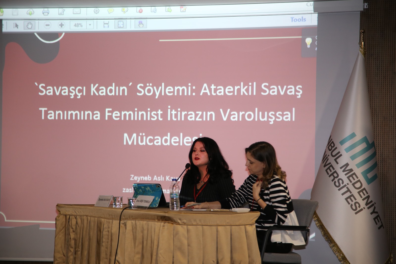 İkinci günün sonunda gerçekleşen panel oturumunda, Türkiye’de felsefede kadınların akademik görünürlüğü, deneyimleri ve eğitim süreçlerine ilişkin kapsamlı bir değerlendirme sunuldu. İki gün boyunca katılımcılar; Kant’tan Levinas’a, Arendt’ten Simone Weil’e Schmitt’ten Agamben’e ve Butler’a uzanan geniş bir düşünür yelpazesi üzerinden savaşın anlamını, etkilerini ve güncel yansımalarını tartıştılar. Panelde, TÜBİTAK tarafından desteklenen “Cumhuriyetin 100 Yılında Felsefede Kadınlar” projesinin ilk adımlarının yine İstanbul Medeniyet Üniversitesi Felsefe Bölümünün düzenlediği bir sempozyumda atıldığı ve araştırma bulgularının ara raporlarının da bu kongre çatısı altında paylaşıldığı ifade edildi. Panelin sonunda ara rapor bulguları ve Türkiye’de kadın felsefecilerin akademik temsilinin güçlendirilmesi üzerine tartışma yürütüldü.