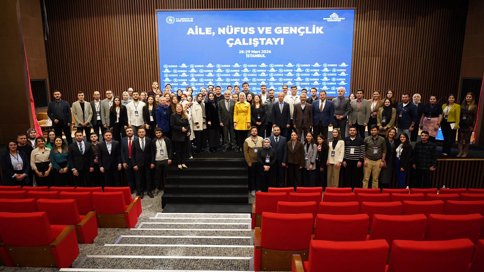 Gençlerin aile yapısı, nüfus dinamikleri ve bu alanlara ilişkin kamu politikalarına yönelik algı, tutum ve beklentilerinin kapsamlı şekilde ele alındığı çalıştaya, gençlik politikalarına katkı sunmak ve karar alma süreçlerinde aktif rol almak isteyen 18-35 yaş aralığında 70 genç ile 20 sivil toplum kuruluşunun temsilcileri katılım sağladı. Üniversitemiz akademisyenlerinin moderatör ve raportör olarak görev aldığı çalıştaya Üniversitemizden koordinatör olarak Prof. Dr. Nihal Petek Boyacı ile Prof. Dr. Yaylagül Ceran Karataş, Prof. Dr. Turgay Şirin, Prof. Dr. Aynur Görmez, Prof. Dr. Eyüp Sevimli, Prof. Dr. Mahmut Hakkı Akın, Doç. Dr. Volkan Koç, Doç. Dr. Gülenay Pınarbaşı, Doç. Dr. Abdulkadir Yeler, Doç. Dr. Numan Turan ve Doç. Dr. Rümeysa Yeni Elbay katıldı.