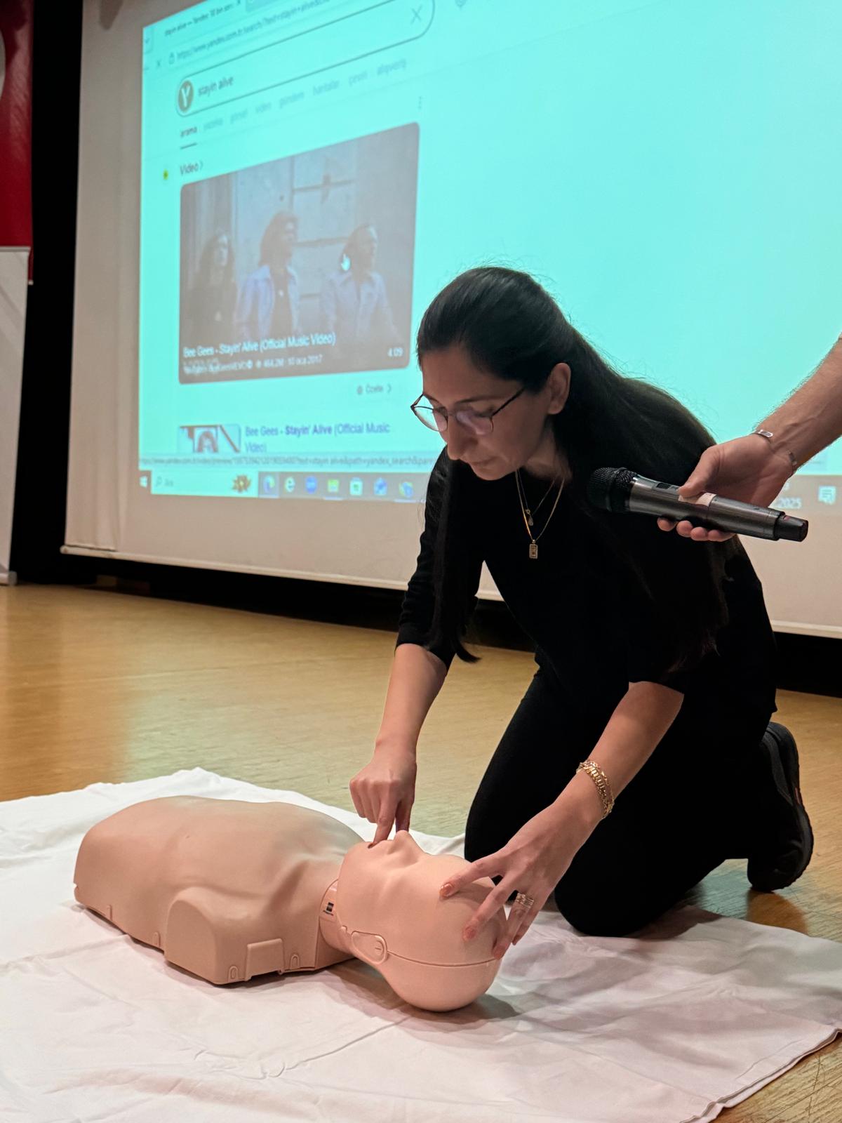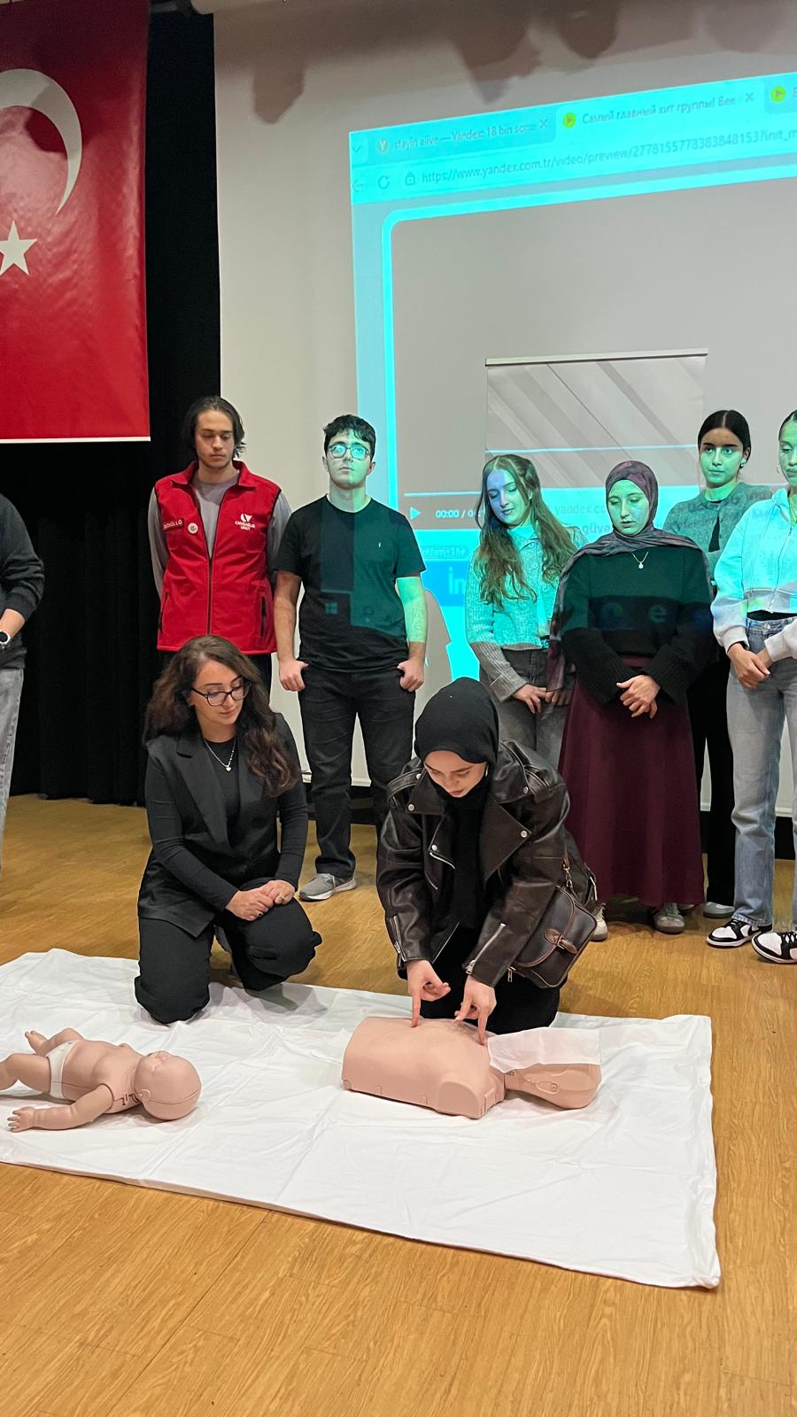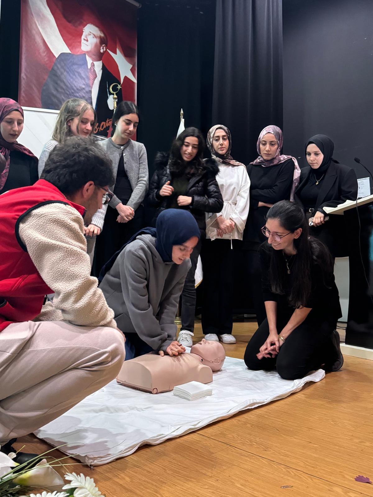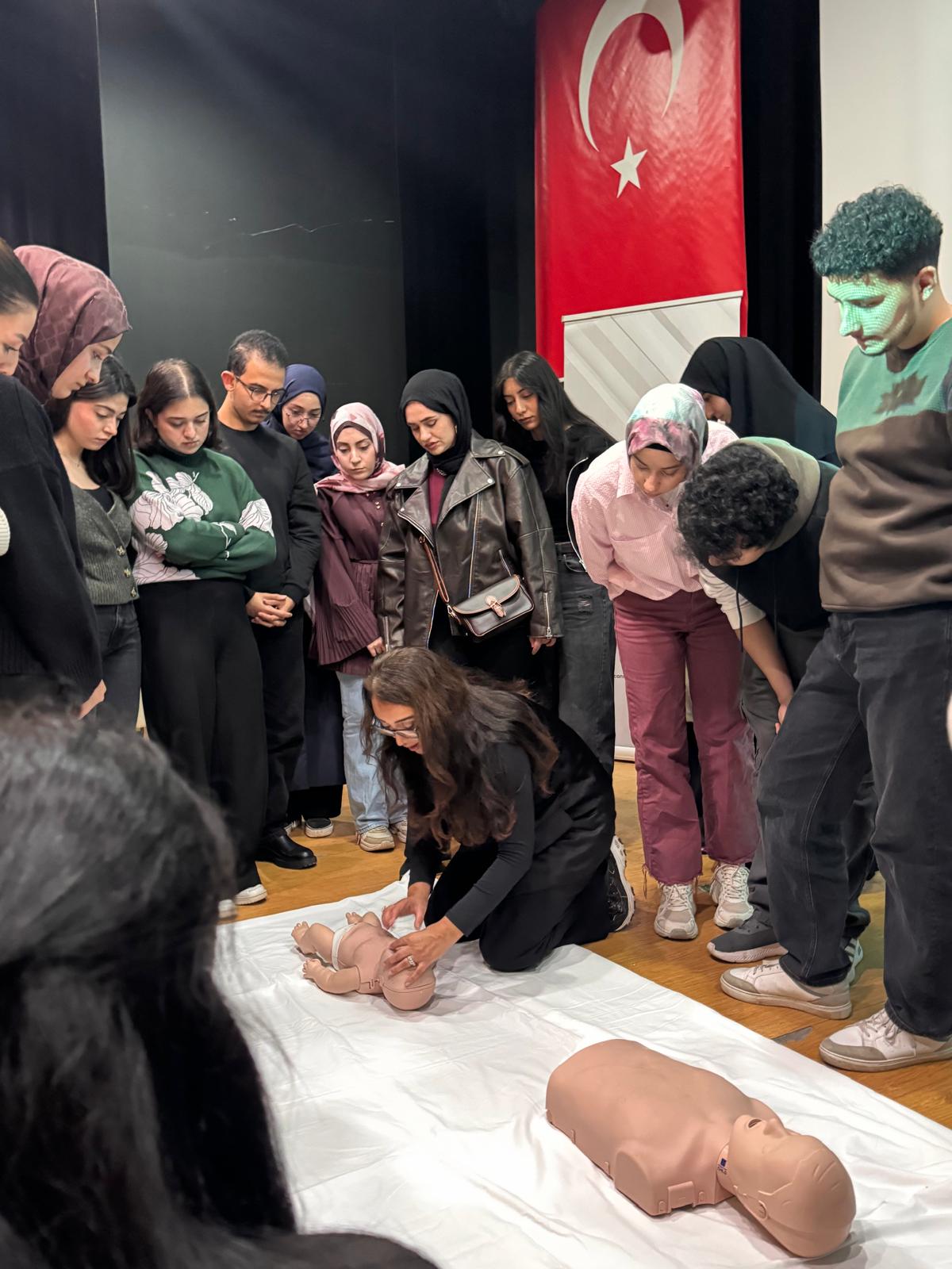 Teorik ve uygulamalı olarak planlanan eğitim kapsamında, katılımcı öğrencilere yetişkin, çocuk ve bebek maketleri üzerinde temel yaşam desteği uygulamaları birebir olarak gösterildi. Uygulamalı eğitim sürecinde her öğrencinin aktif katılımı sağlanarak beceri kazanmalarına yönelik çalışmalar yürütüldü.
