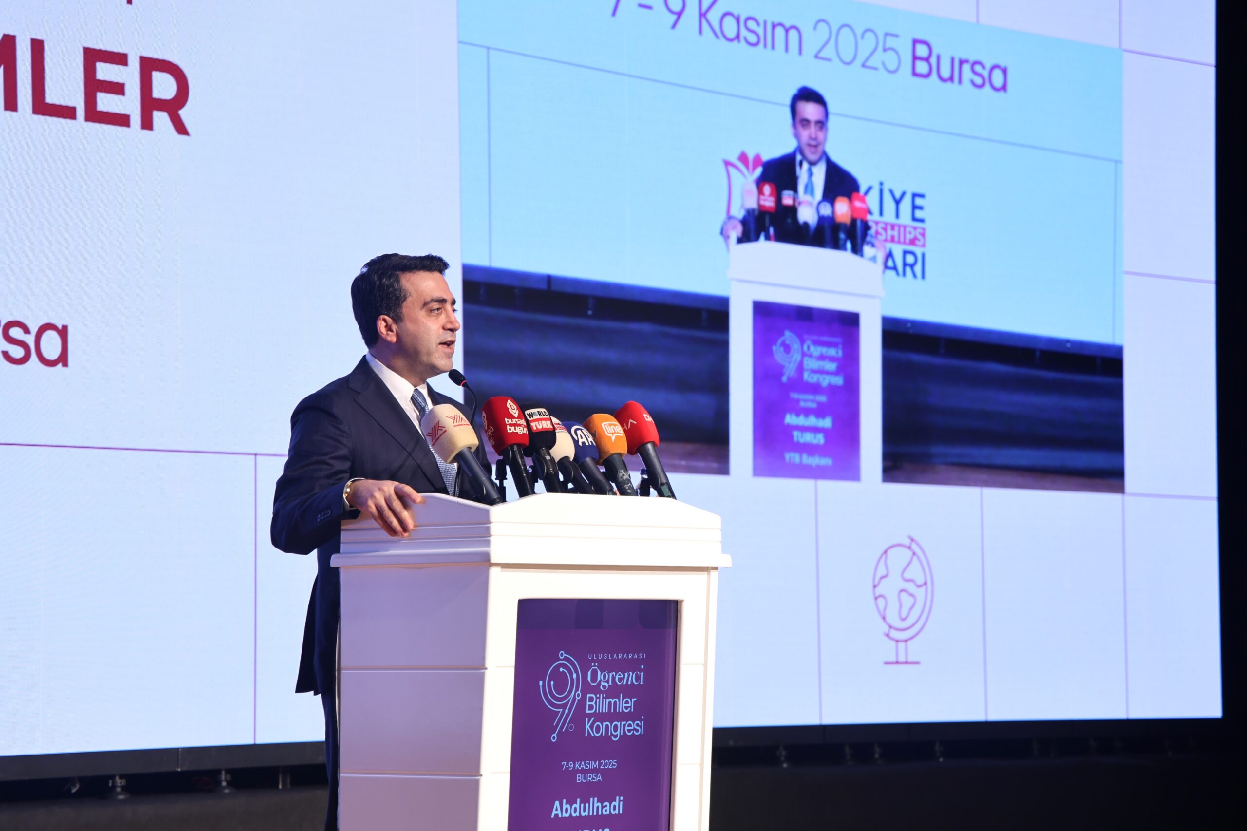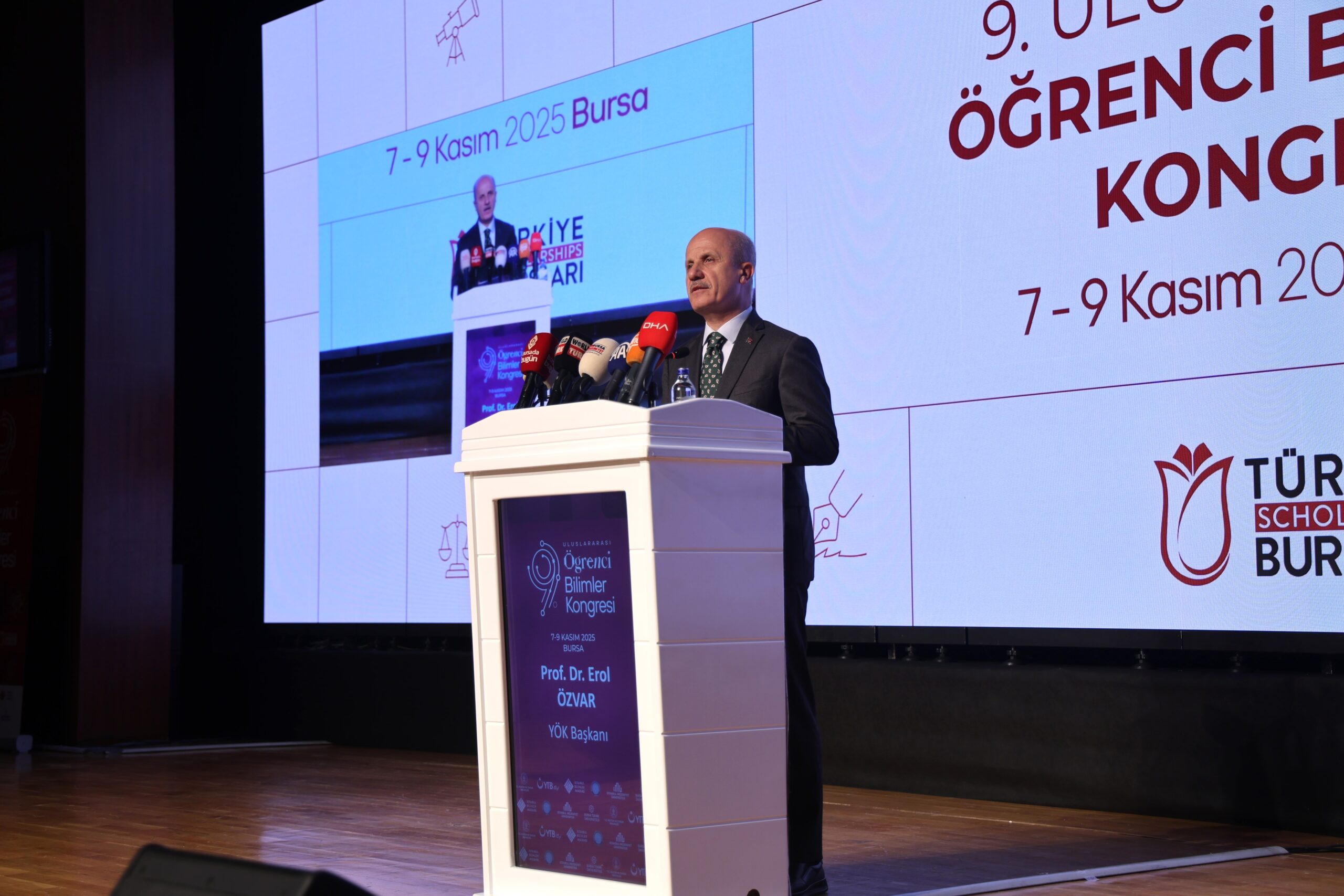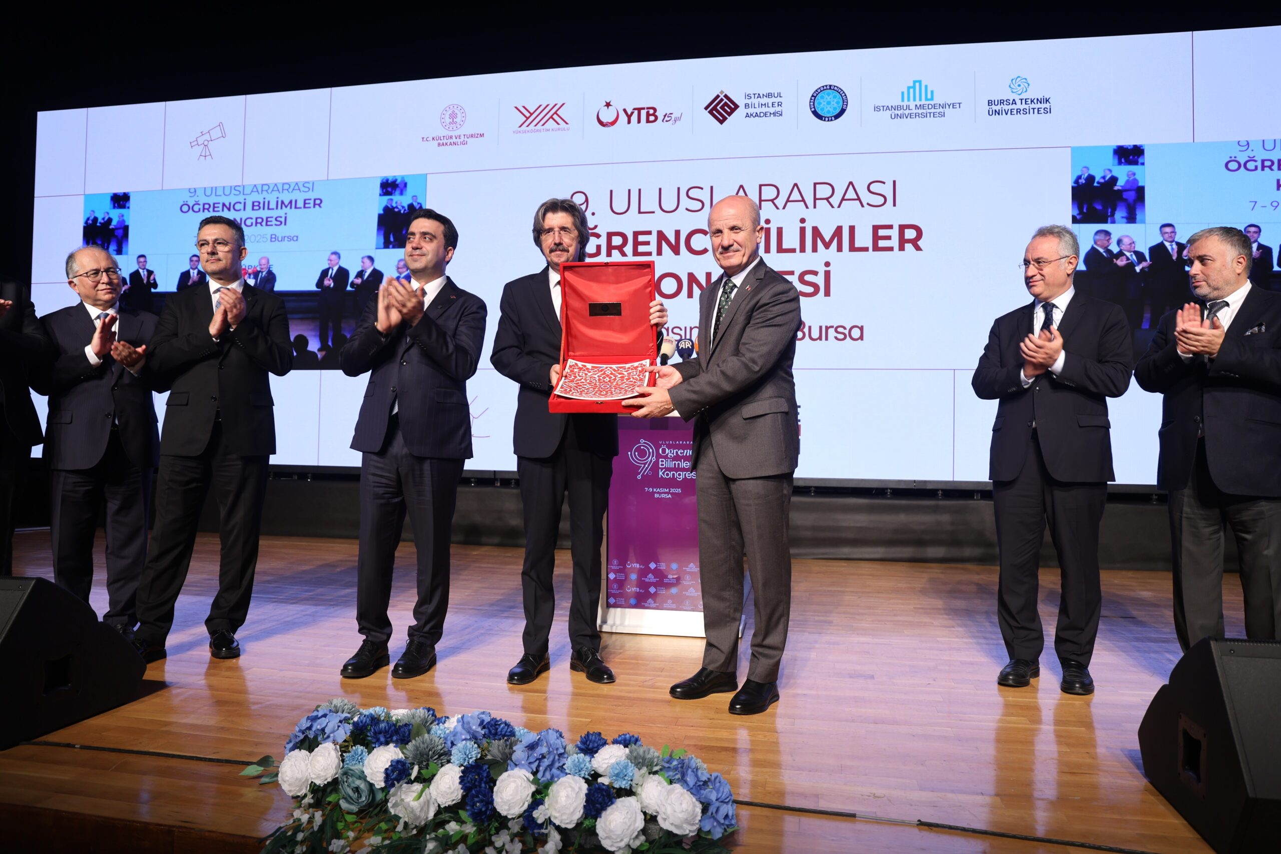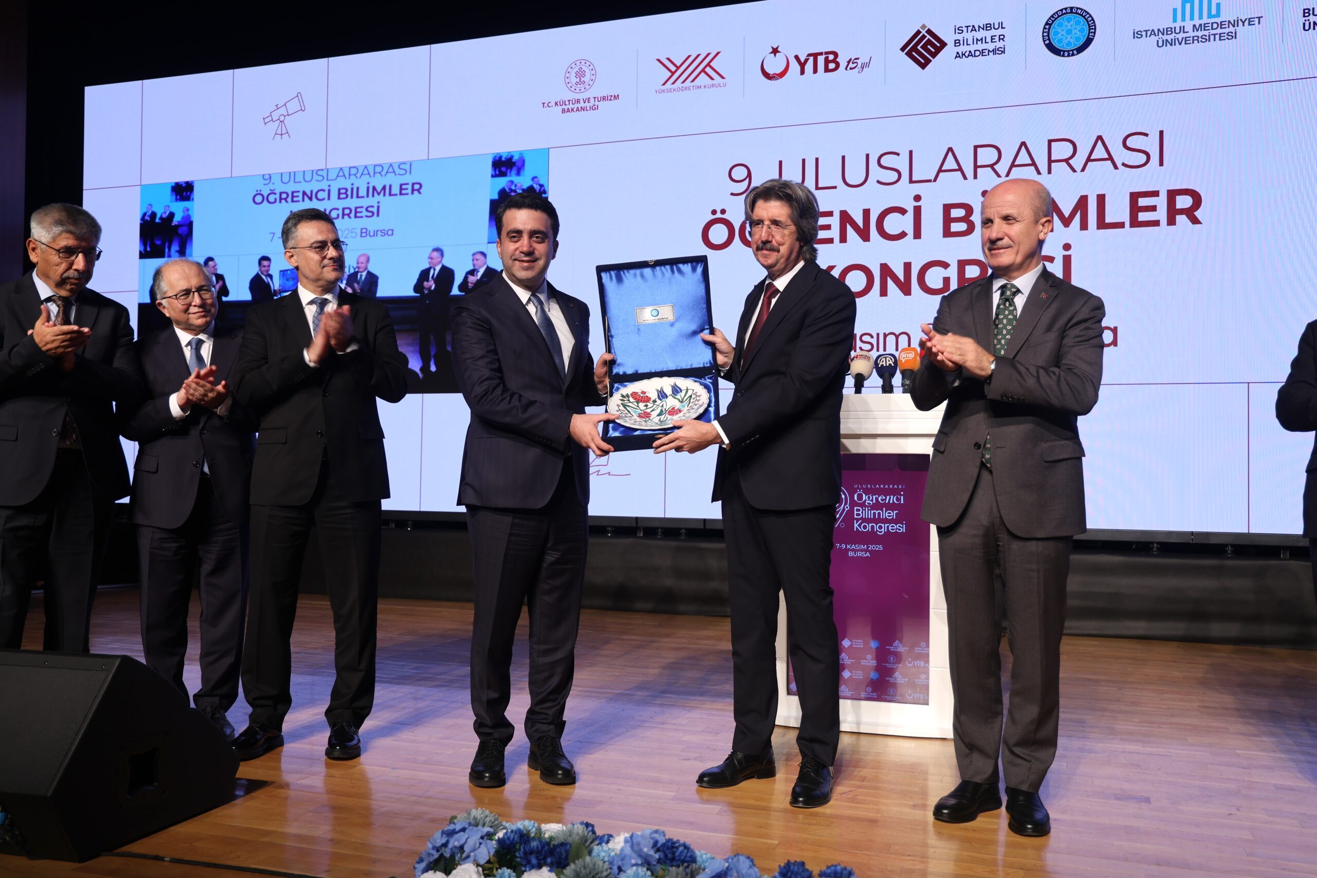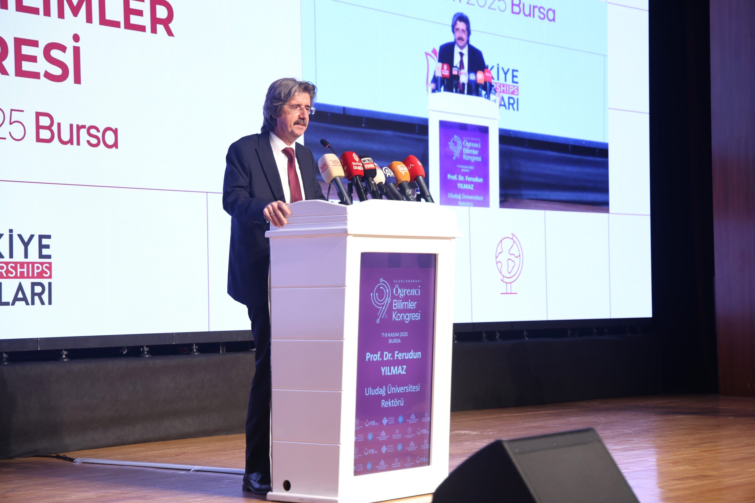 Ülkemizde öğrenim gören uluslararası öğrencilere küresel dünyanın gündem ve ihtiyaçlarına ilişkin yaklaşım, görüş ve önerilerini akademik esasta çıktıya dönüştürme fırsatı tanımak amacıyla düzenlenen “Uluslararası Öğrenci Bilimler Kongresi”nin 9.’su, 7-9 Kasım 2025 tarihlerinde Bursa Uludağ Üniversitesi’nde gerçekleştirildi. Üniversitemiz ile Yurtdışı Türkler ve Akraba Topluluklar Başkanlığı (YTB), İstanbul Bilimler Akademisi (İBA), Bursa Uludağ Üniversitesi ve Bursa Teknik Üniversitesi iş birliğiyle düzenlenen Kongre’nin açılış törenine Yükseköğretim Kurulu (YÖK) Başkanı Prof. Dr. Erol Özvar, Yurtdışı Türkler ve Akraba Toplulukları (YTB) Başkanı Abdulhadi Turus, YÖK Başkan Vekili Prof. Dr. Naci Gündoğan, Bursa Uludağ Üniversitesi Rektörü Prof. Dr. Ferudun Yılmaz, Rektörümüz Prof. Dr. Gülfettin Çelik, Bursa Teknik Üniversitesi Rektörü Prof. Dr. Naci Çağlar, Mudanya Üniversitesi Rektörü Prof. Dr. Emin Karip, Bursa Vali Vekili Kadir Sertel Otçu, Bursa Milletvekili Mustafa Yavuz, Bursa Milletvekili Refik Özen, Muğla Sıtkı Koçman Üniversitesi Rektörü Prof. Dr. Turhan Kaçar, İzmir Demokrasi Üniversitesi Rektörü Prof. Dr. Selim Karahasanoğlu, Marmara Üniversitesi Rektörü Prof. Dr. Mehmet Emin Okur, akademisyenler, sivil toplum kuruluşlarının temsilcileri ile çok sayıda öğrenci katıldı.