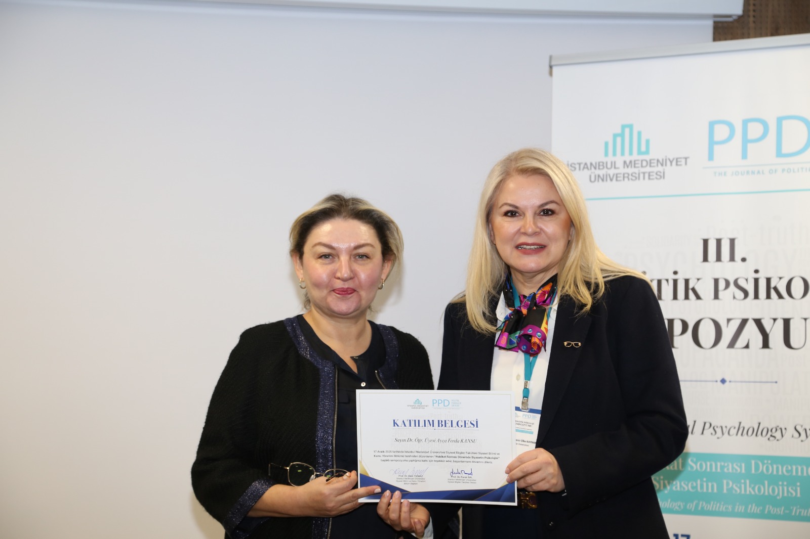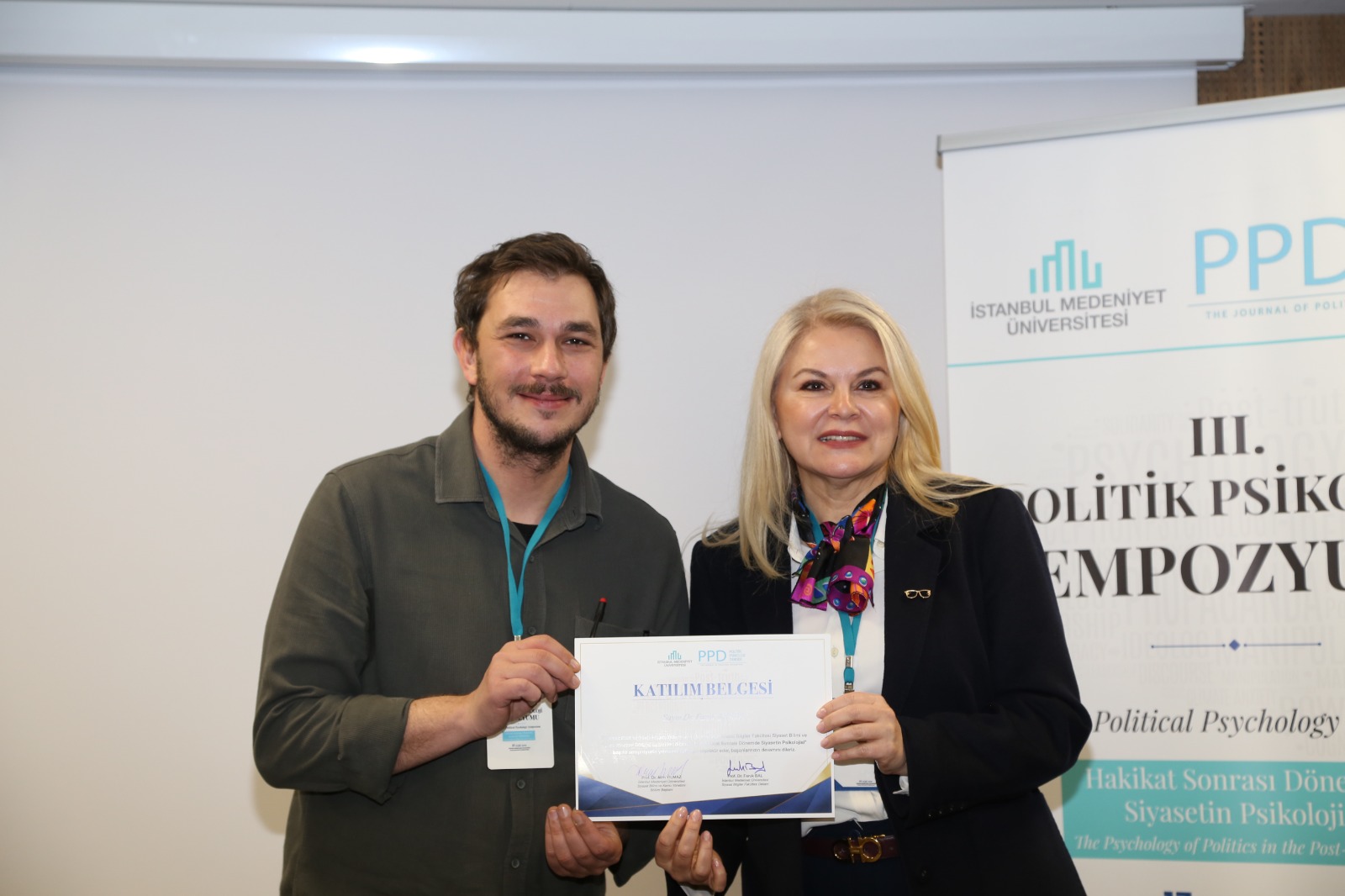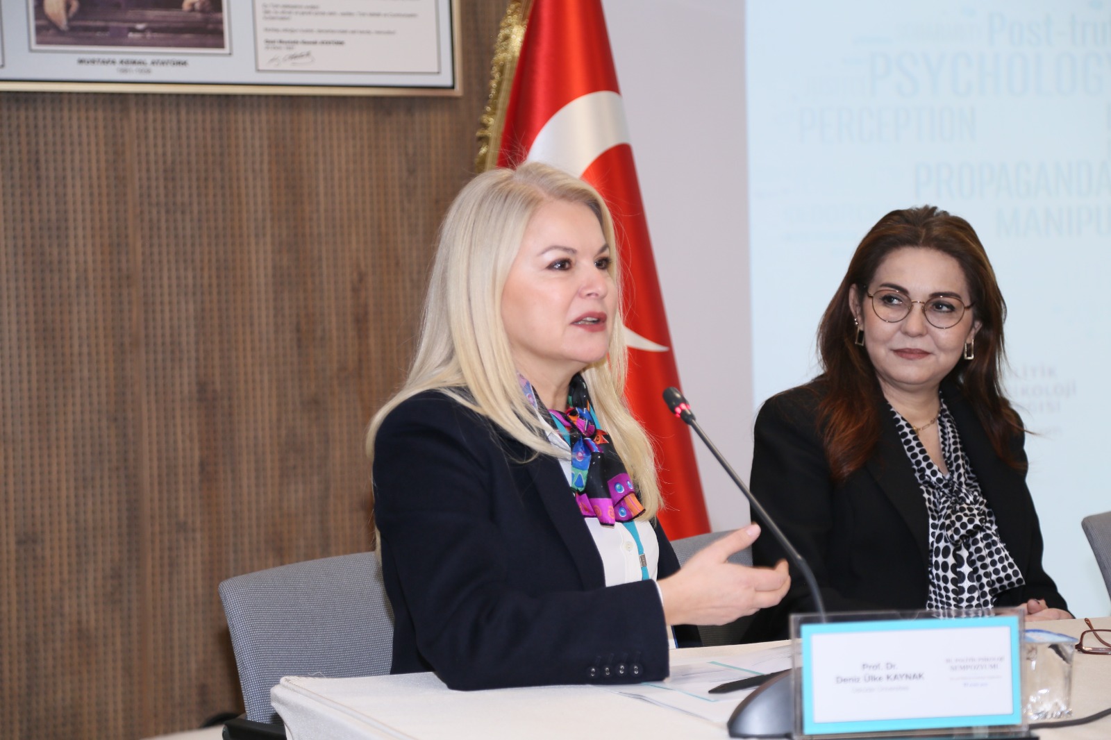 Oturumun devamında küresel ve yerel siyasetin psikolojik kodları tartışıldı. Üniversitemizden Doç. Dr. Helin Sarı Ertem, “Hakikat Sonrası Çağın Otoriter Kıskacında Popülizm ve Trump Dönemi ABD’si” başlıklı sunumunda, popülist söylemlerin demokratik sistemler üzerindeki etkilerini ABD örneği üzerinden değerlendirdi. Yine üniversitemizden Dr. Öğr. Üyesi Didem Geylani ise Türk siyasal hayatındaki dönüşümleri “Meta-Truth” kavramı üzerinden okurken, Bilkent Üniversitesi’nden Dr. Faruk Aksoy ise “İttihatçılık Yeniden? Türkiye’de Enver Paşa Algısı Üzerine Ampirik Bir İnceleme” başlıklı çalışmasıyla tarihsel figürlerin güncel algıdaki yerini bilimsel verilerle ortaya koydu.