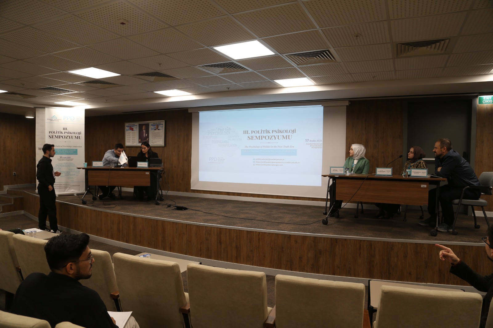 Dijitalleşen dünyada değişen siyasal algıları, dezenformasyon süreçlerini ve modern bireyin hakikatle kurduğu yeni ilişki biçimlerini bilimsel bir zeminde tartışma amacıyla düzenlenen III. Politik Psikoloji Sempozyumu, “Hakikat Sonrası Dönemde Siyasetin Psikolojisi” ana temasıyla 17 Aralık 2025 Çarşamba günü Ziraat Bankası Kütüphanesi konferans salonlarında eş zamanlı olarak gerçekleştirildi.