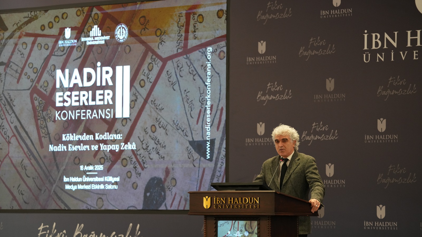 II. Nadir Eserler Konferansı, 16 Aralık 2025 tarihinde İstanbul Medeniyet Üniversitesi, İbn Haldun Üniversitesi ve İstanbul Üniversitesi Kütüphane ve Dokümantasyon Daire Başkanlıklarının iş birliği ile İbn Haldun Üniversitesi ev sahipliğinde gerçekleştirildi. “Köklerden Kodlara: Nadir Eserler ve Yapay Zeka” teması ile nadir eserler ve dijital dönüşüm konusundaki yaklaşımların sentezlendiği konferansta, nadir eserlerin korunması ve dijitalleştirilmesi süreçlerinde yapay zeka teknolojilerinin sunduğu imkanları akademik ve pratik açıdan ele alarak geleceğe taşımak amaçlandı.