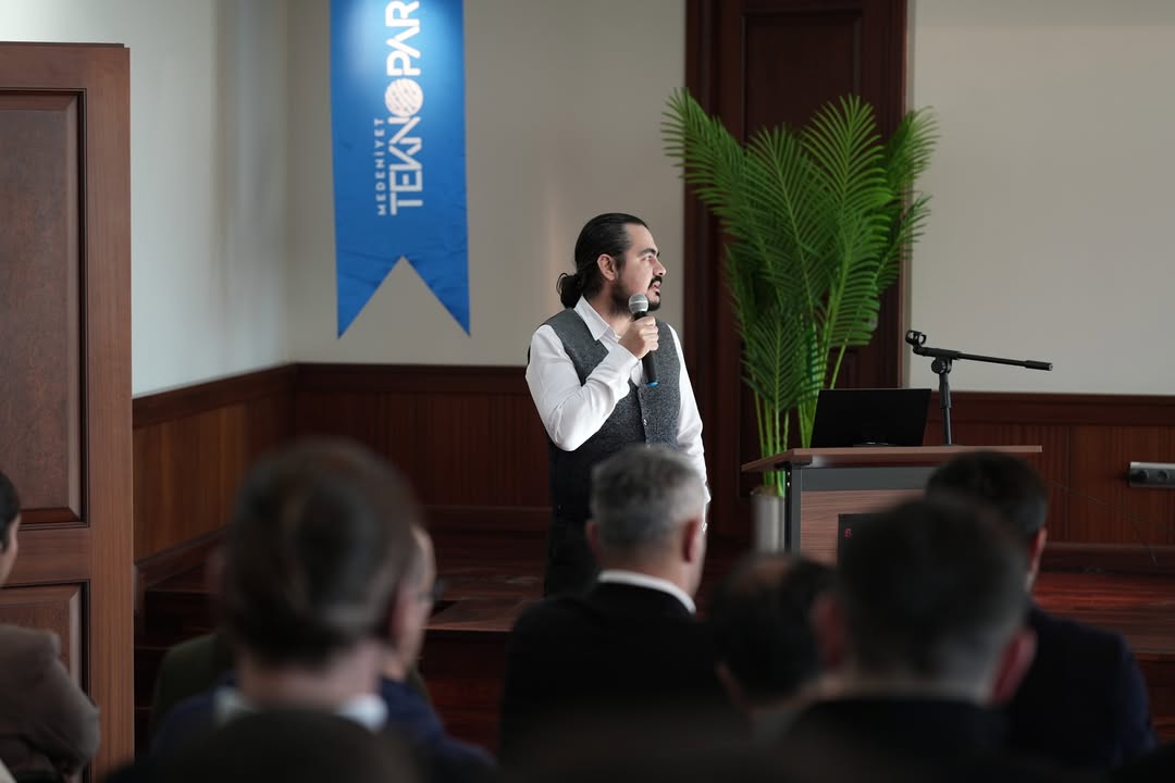 Program kapsamında gerçekleştirilen Teknopark Sunumları bölümünde, Medeniyet Teknopark’ın 2025 yılı boyunca yürüttüğü faaliyetler, öne çıkan projeler ve gelecek döneme ilişkin yol haritası katılımcılarla paylaşıldı.