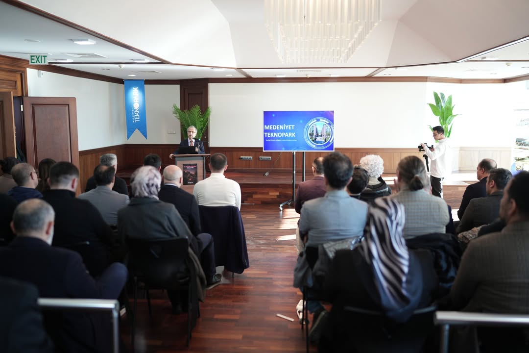 Ardından, İstanbul Medeniyet Üniversitesi Rektörü ve Medeniyet Teknopark Yönetim Kurulu Başkanı Prof. Dr. Gülfettin Çelik katılımcılara hitap etti. Prof. Dr. Çelik, üniversite–sanayi iş birliğinin Türkiye’nin kalkınma hedefleri açısından taşıdığı önemi vurguladığı konuşmasında, Medeniyet Teknopark bünyesinde geliştirilen yenilikçi projelerin ekonomik ve teknolojik dönüşüme katkı sunduğunu ifade etti.