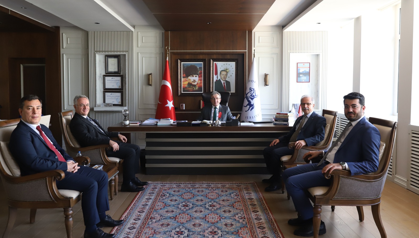 Ziyaretler kapsamında Rektörümüz ve Genel Sekreterimiz; Uludağ Üniversitesi Rektörü Prof. Dr. Ferudun Yılmaz, Bursa Teknik Üniversitesi Rektörü Prof. Dr. Naci Çağlar, İzmir Demokrasi Üniversitesi Rektörü Prof. Dr. Selim Karahasanoğlu, İzmir Katip Çelebi Üniversitesi Rektörü Prof. Dr. Saffet Köse, Dokuz Eylül Üniversitesi Rektörü Prof. Dr. Bayram Yılmaz ve Kestel Belediye Başkanı Ferhat Erol’u makamlarında ziyaret etti.