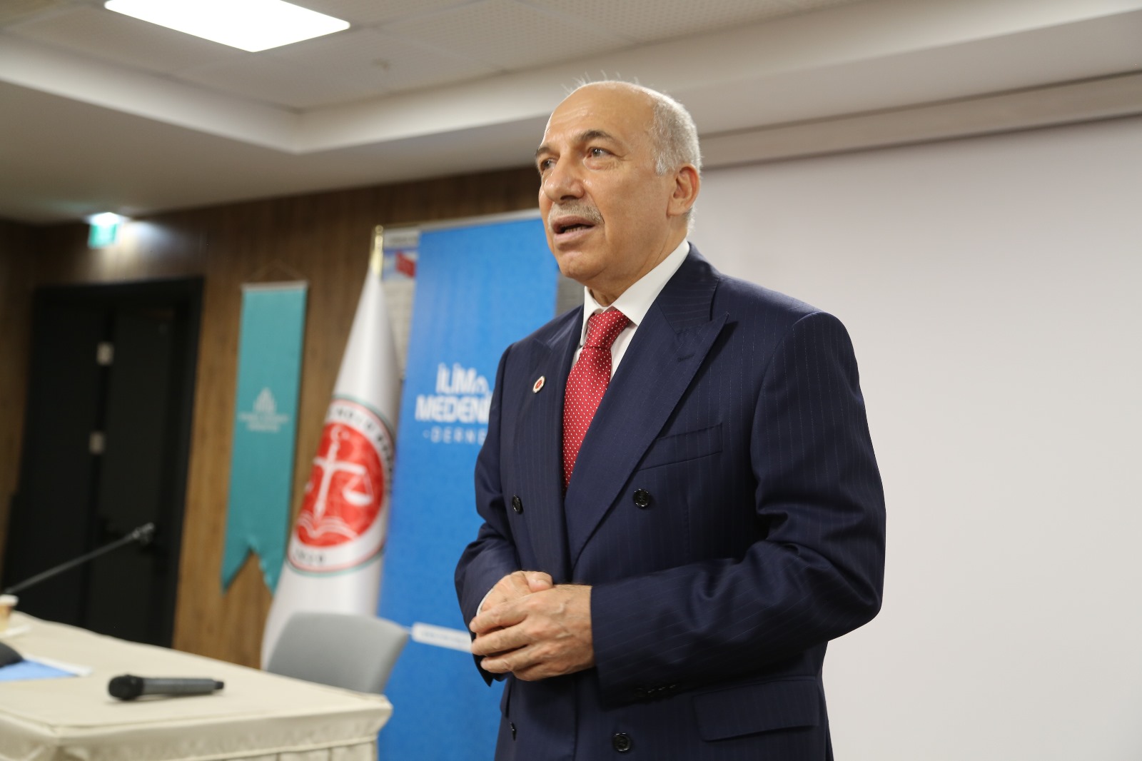 Hukuk Eğitim Programı’nın ikinci oturumunda TBMM Adalet Komisyonu Başkanı Prof. Dr. Cüneyt Yüksel, “Gazze Sonrası Uluslararası Hukukun Geleceği ve İnsan Hakları” konulu konuşmasıyla katılımcılarla buluştu.