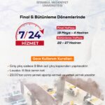 Öğrencilerin sınav dönemlerinde daha verimli çalışabilmeleri ve akademik başarılarının desteklenmesi amacıyla uygulamaya konulan bu düzenlemeyle, okuma salonu 19 Mayıs – 4 Haziran 2025 tarihleri arasındaki final sınavları ile 22 – 27 Haziran 2025 tarihleri arasındaki bütünleme sınavları boyunca kesintisiz olarak açık kalacak.