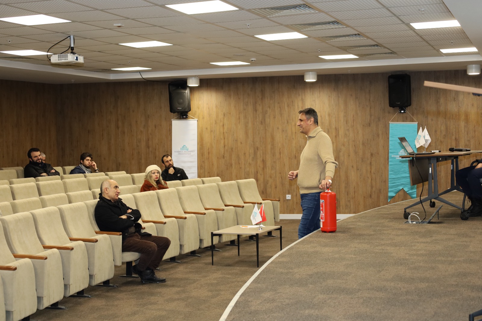 İstanbul Büyükşehir Belediyesi İtfaiye Müdürlüğü eğitmenleri tarafından verilen seminerde, özellikle acil durum ekipleri içerisinde yer alan söndürme ekiplerine yönelik kritik bilgiler paylaşıldı. Ayrıca olası yangın durumlarında alınması gereken önlemler, doğru tahliye yöntemleri, yangın tüplerinin kullanımı ve yangına ilk müdahale teknikleri teorik ve uygulamalı olarak anlatıldı. Kampüs güvenliğinin sürdürülebilirliği açısından büyük önem taşıyan eğitim, katılımcıların sorularının yanıtlanması ve gerçekleştirilen tatbikat ile sona erdi.