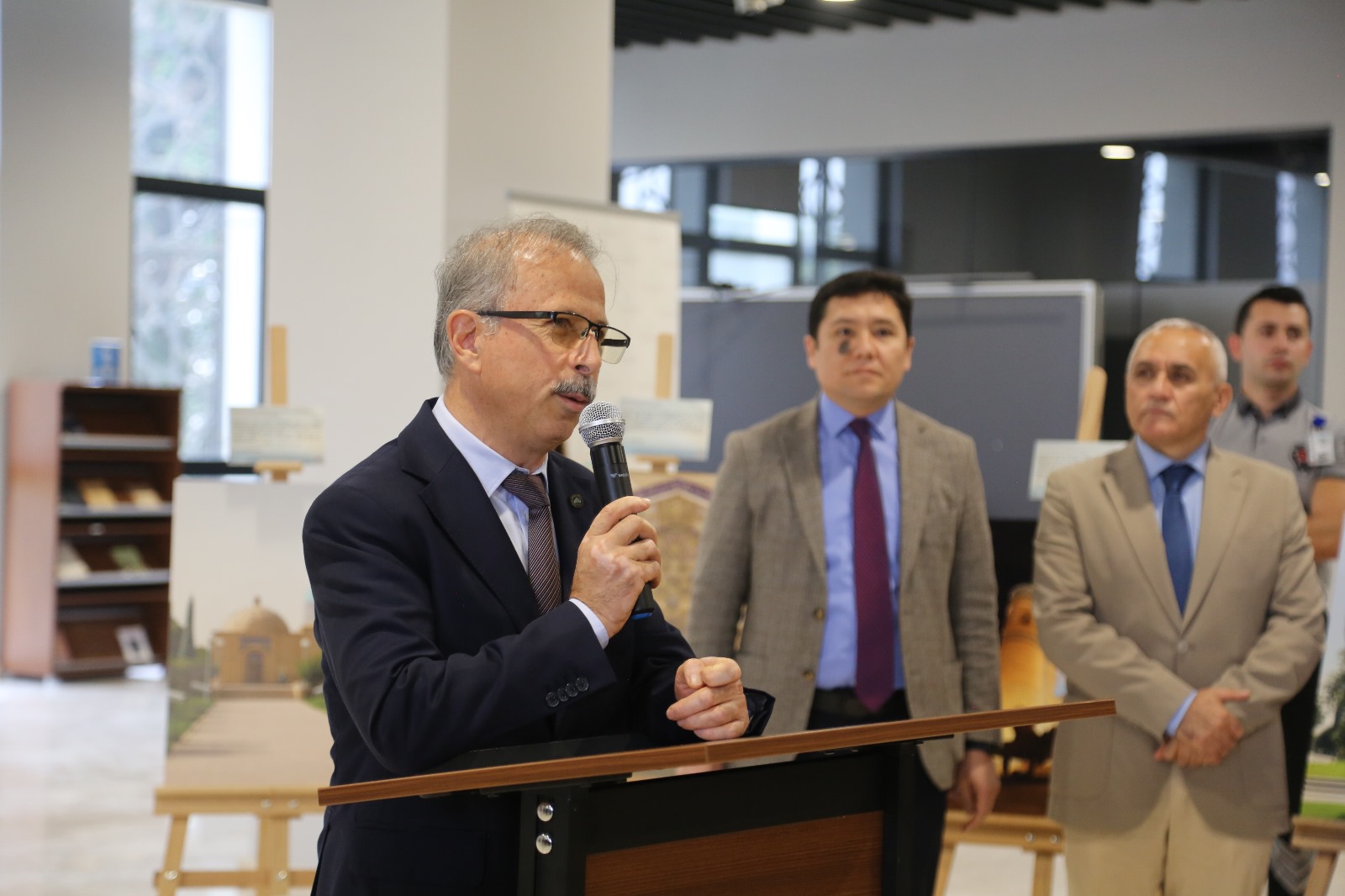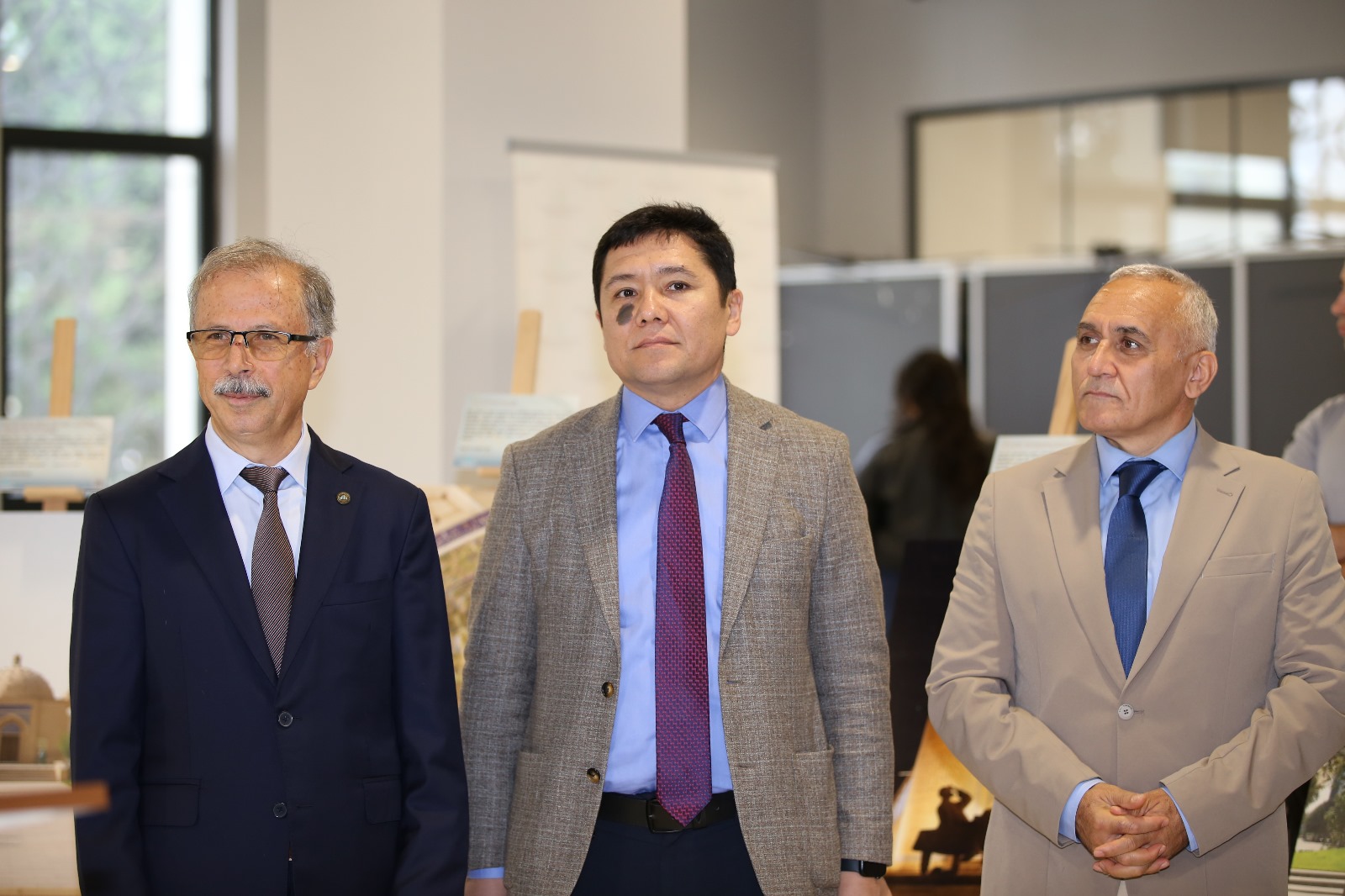 Özbekistan Cumhuriyeti İstanbul Başkonsolosu Sherzod Abdunazarov, Rektörümüz Prof. Dr. Gülfettin Çelik, Rektör Yardımcımız Prof. Dr. Yaşar Bülbül, Genel Sekreterimiz Ali Ramazan Tak ile akademik ve idari personelimizin katıldığı sergi, açılış konuşmalarıyla başladı.