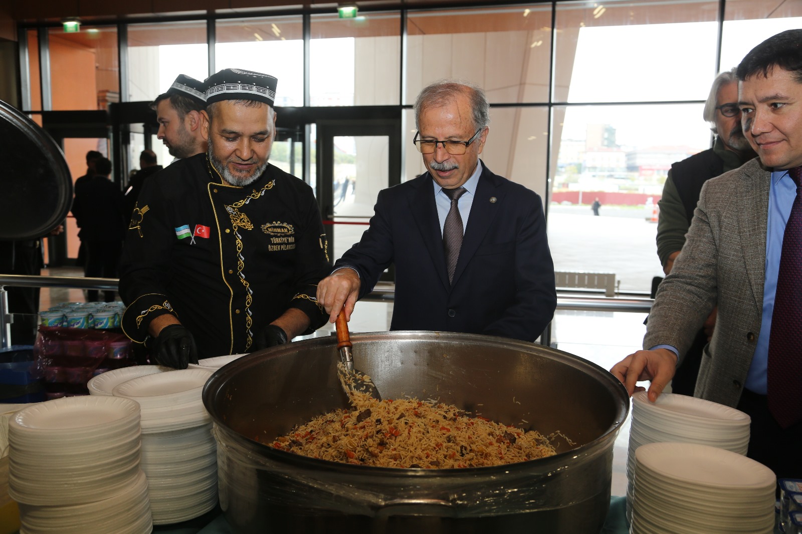 Rektörümüz Prof. Dr. Gülfettin Çelik açılış konuşmasında, üniversitenin yalnızca bir eğitim ve araştırma kurumu değil aynı zamanda toplumsal ve kültürel bağları güçlendiren bir yapı olduğunu vurguladı. Çelik, “Biz devletin en özel üniversitesiyiz. Eğitim ve araştırmanın yanında toplumla iç içe, medeniyetimizin izlerini takip eden bir üniversite olmayı hedefliyoruz. Balkanlar’dan sonra bu yıl Özbekistan’a gittik. Niyetimiz, kültürel temellerimizi ve medeniyet izlerimizi yakalamaktı. Hive’den Buhara’ya, Semerkant’tan Taşkent’e uzanan bu yolculuk bizlere tarihimizin derinliğini bir kez daha hissettirdi.” ifadelerini kullandı.