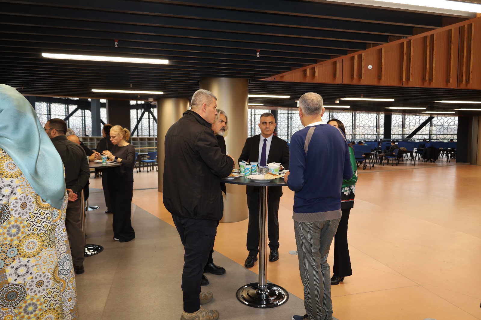 “Medeniyetin İzinde: Özbekistan Fotoğraf ve Kültür Sergisi” kurdele kesiminin ardından gerçekleştirilen müzik dinletisi ve Özbek pilavı ile Özbek çayı ikramıyla devam etti. Üniversitemizde bir hafta boyunca ziyaretçilerini ağırlayacak olan sergi, Türk-İslam medeniyetinin doğudan batıya uzanan köklü yolculuğuna ışık tutarken, katılımcılara hem kültürel hem de manevi bir keşif deneyimi sunmaya devam edecek.