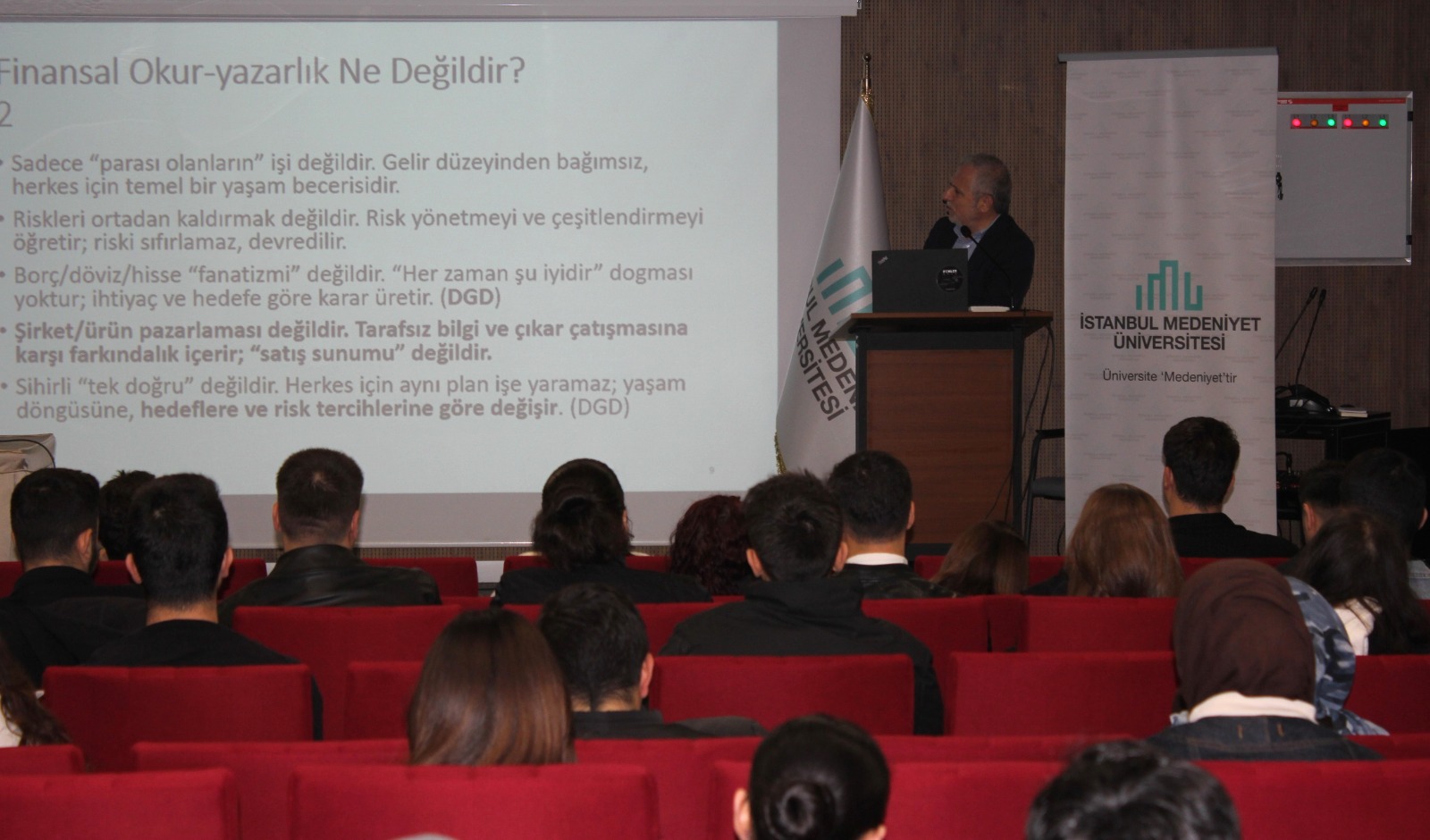 Öğrencilerimizde finansal okuryazarlığı geliştirmek ve paranın doğası ile stratejik yönetiminin hayati öneminin anlatılması amacıyla düzenlenen “Finansal Okuryazarlık Eğitimi” Celali Yılmaz eğitmenliğinde 7 Ocak 2026 Çarşamba günü Merkez Kütüphane Ziraat Bankası Konferans Salonu’nda gerçekleştirildi.