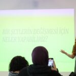 Etkinlikte İMÜ Sosyoloji Bölümü 4. sınıf öğrencisi Zeynep Bozbulut, kadınların özgürleşmesini ve eşitlik mücadelesini merkezine alan feminizmin tarihte dalgalar halinde gelişimini ve bu süreçte elde edilen temel kazanımları aktardıktan sonra, toplumsal cinsiyet eşitsizliğinin iş gücü, eğitim, sağlık, siyasi katılım gibi yaşamın pek çok alanında kadınların erkeklere göre dezavantajlı konumda olmasına yol açarak kadınları olumsuz etkilediğine dikkat çekti. Toplumsal cinsiyet eşitliği için verilen mücadelede kadınların ve kız çocuklarının güçlendirilerek kadın istihdamının arttırılması, cinsiyetler arası ücret farkının giderilmesi ve özellikle iş hayatında kadınların lider ve yönetici pozisyonlara getirilmesinin önemini vurgulayan Bozbulut, cinsiyet ayrımcılığı ve kadına yönelik şiddet konularına da değindi.